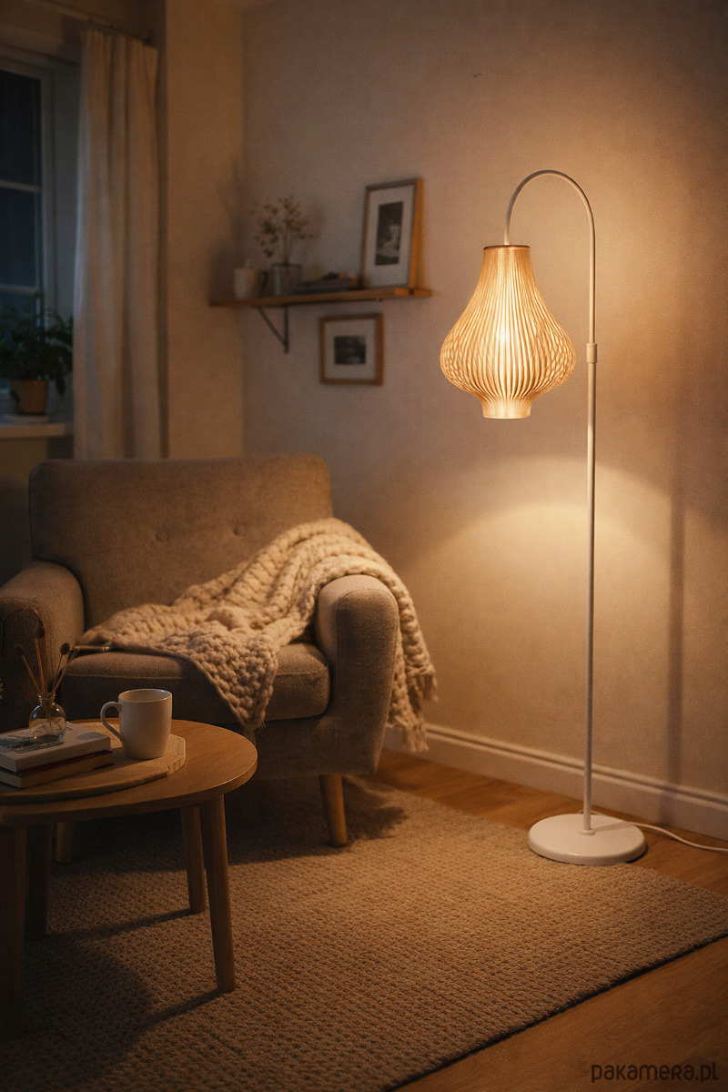 Dzięki regulowanej wysokości (130–160 cm) lampa może służyć zarówno jako oświetlenie do czytania przy fotelu, jak i jako główne światło nastrojowe w salonie, sypialni lub gabinecie. Prosta forma sprawia, że świetnie wpisuje się w wnętrza vintage, mid-century modern, retro oraz loft.