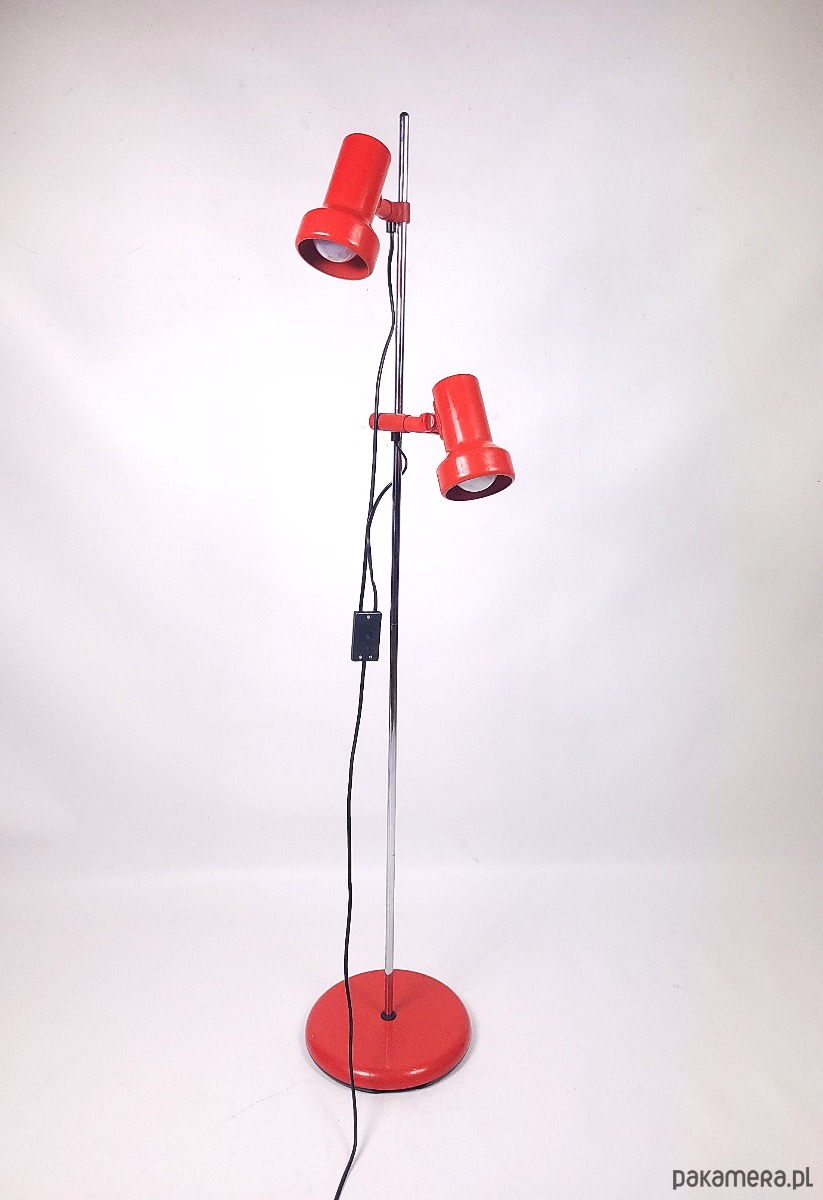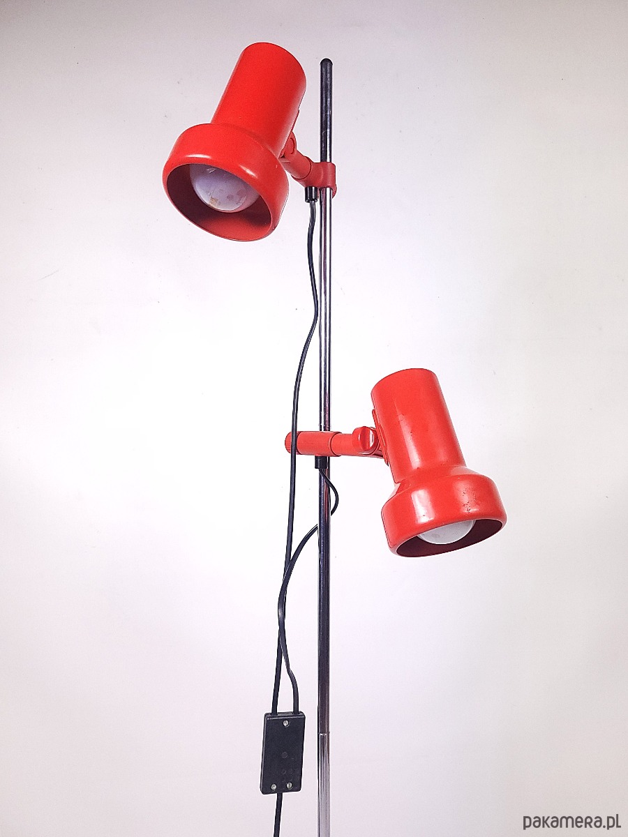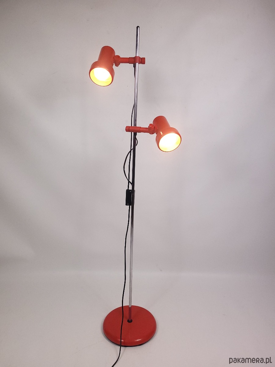 Lampa stojąca lata 70. Lampa w stanie dobrym posiada minimalne ślady czasu, niewielki ubytek od spodu lampy.