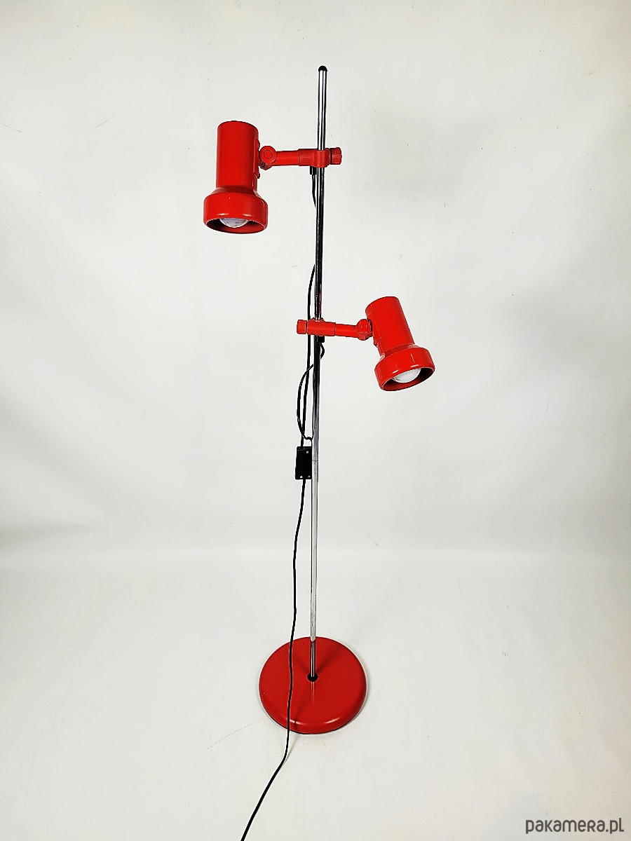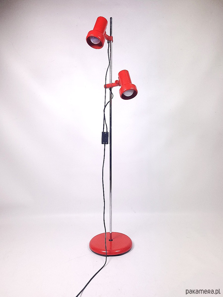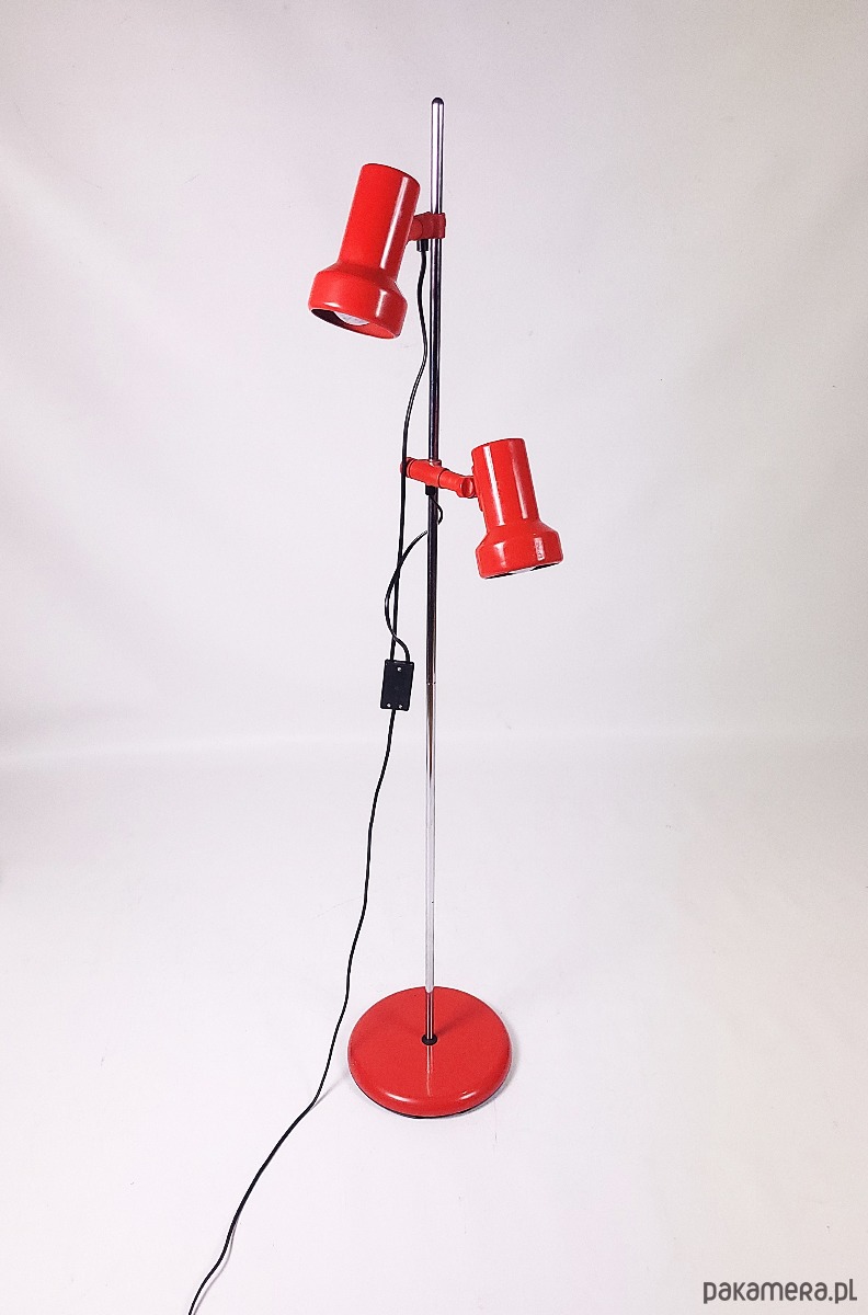 Lampa stojąca lata 70. Lampa w stanie dobrym posiada minimalne ślady czasu, niewielki ubytek od spodu lampy.
