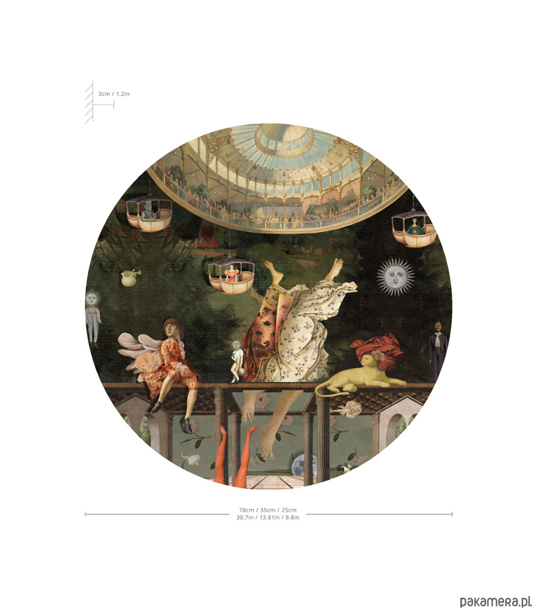 Lekki panel z autorską grafiką, osadzony na stalowej bazie lakierowanej proszkowo (RAL 9005, kod P013). Powierzchnia ma matowe wykończenie i delikatną strukturę przypominającą lniane płótno.