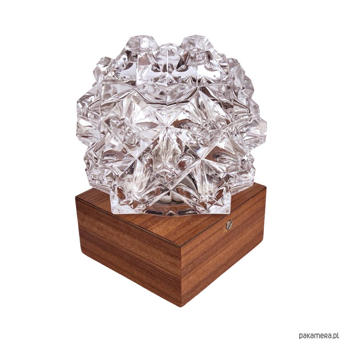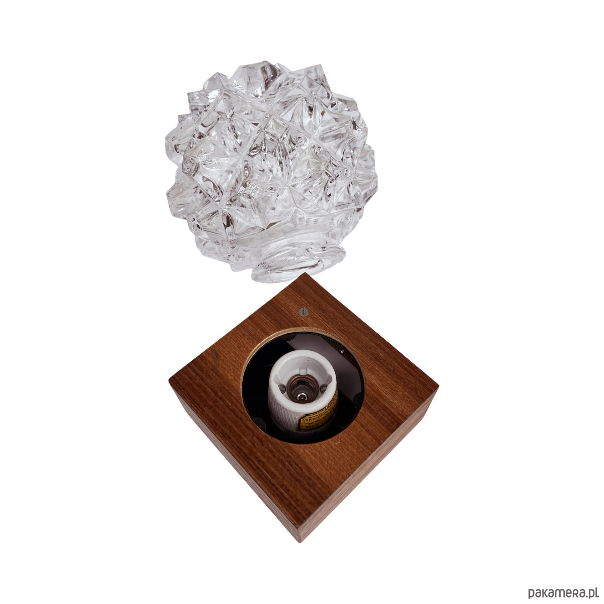 Drewniana podstawa świetnie współgra z szklanym kloszem, dodając ciepła i elegancji.W lampie wymieniono przewód, włącznik i wtyczkę** – jest w pełni sprawna i gotowa do użycia.