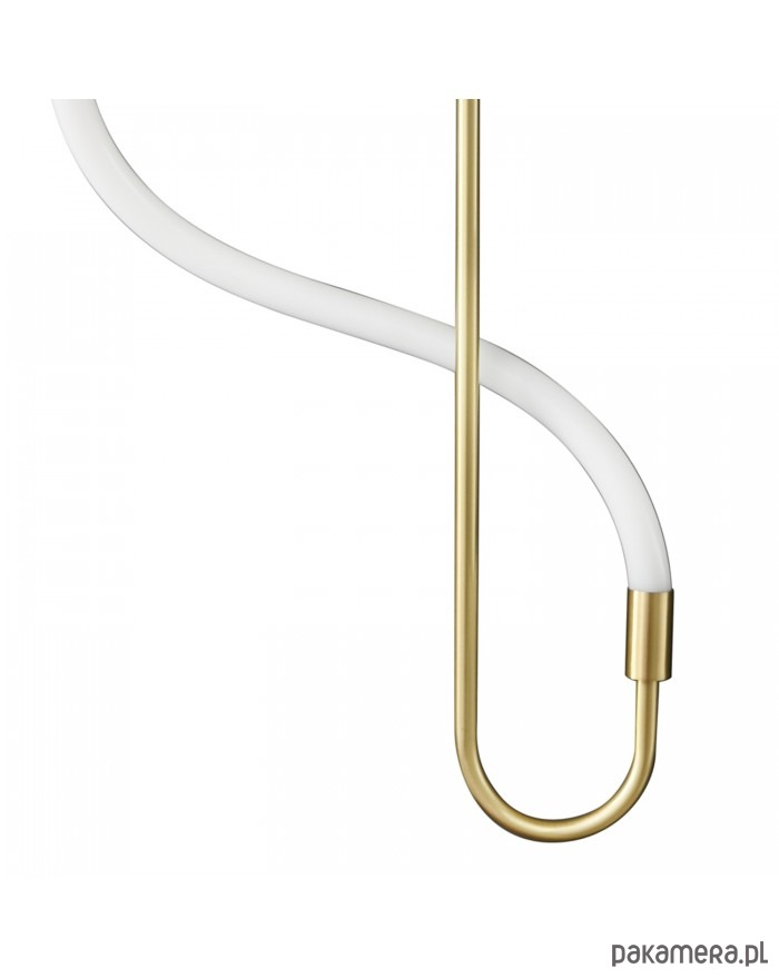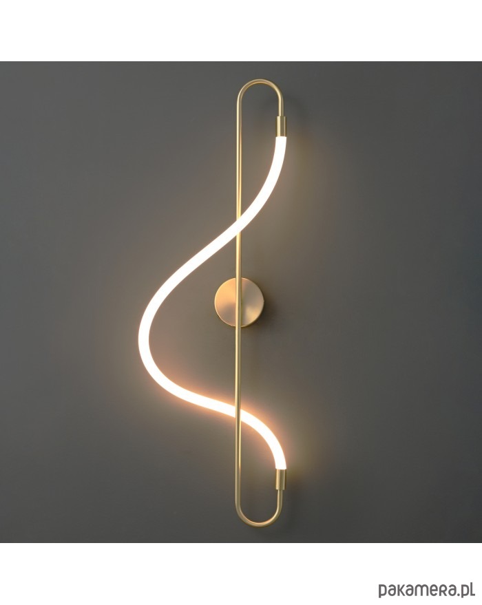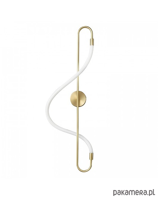 Lampa ścienna wykonana została z metalu oraz aluminium. Forma kinkietu swoim kształtem przypomina serpentynę lub klucz wiolinowy. Piękny dekoracyjny kinkiet sprawia, że wnętrze ma oryginalny wystrój, jego nietuzinkowy design sprawia, że przyciąga wzrok. Nowoczesny kinkiet łączy modną kolorystykę bieli i złota. Złoty kolor dominuje na ramie, a przez biel przenika światło. Wysoka jakość wykonania i prosta konstrukcja lampy gwarantuje łatwość w utrzymaniu czystości.