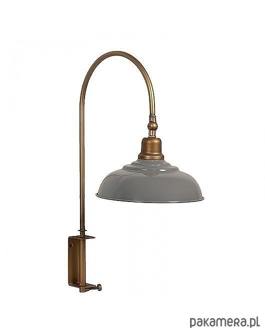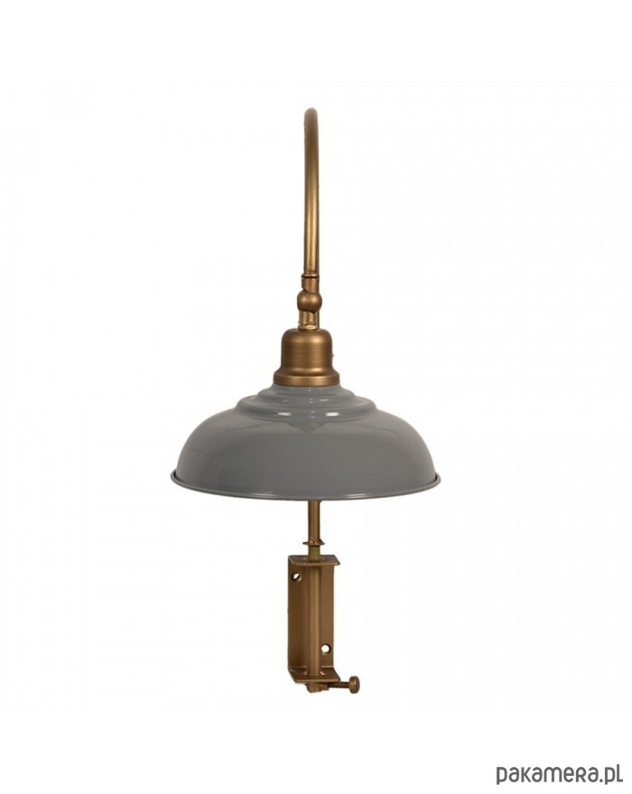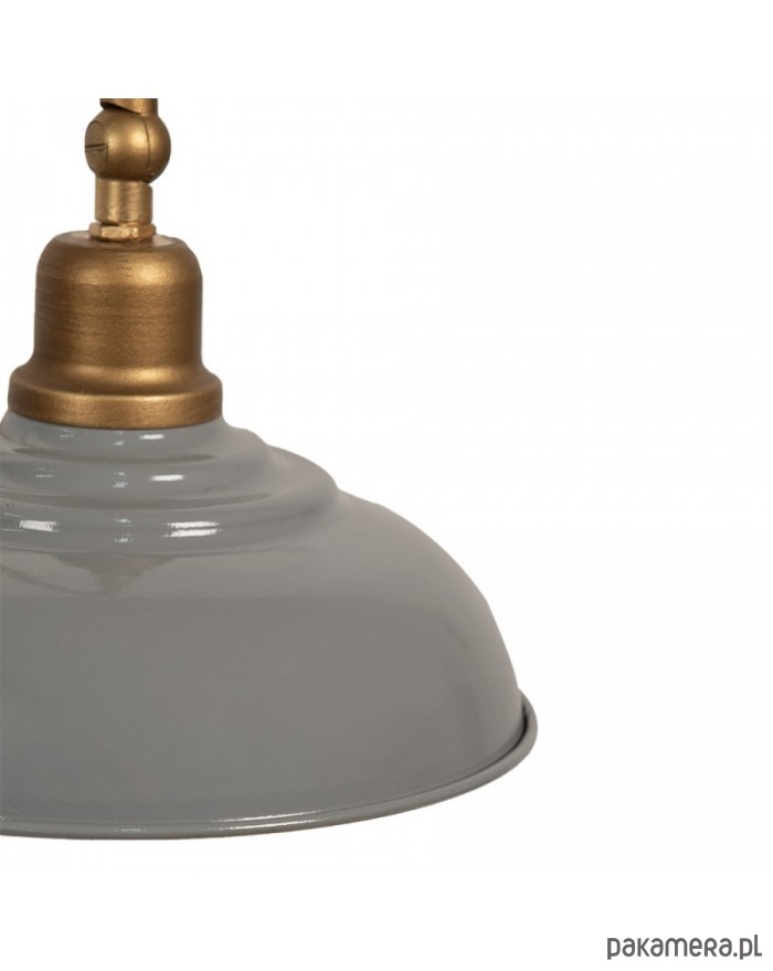 Rewelacyjna lampa ścienna w stylu retro. Wykonana w całości z metalu. Podstawa jest w kolorze antycznego złota a klosz jest szary.