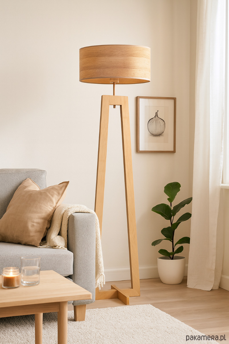 Lampa stojąca drewniana w stylu skandynawskim BALI ECO