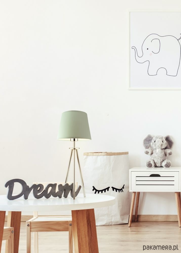 Dziecięcy wystrój wnętrza charakteryzuje często słodka kolorystyka oraz ciekawy, nieszablonowy design. Model lampki nocnej BERGEN został stworzony opierając się właśnie o takie założenia. Oświetlenie przyciąga wzrok pastelowymi kolorami oraz przeuroczym abażurem w kształcie stożka.