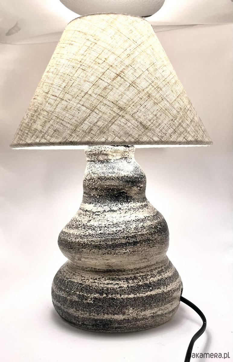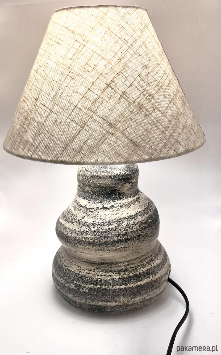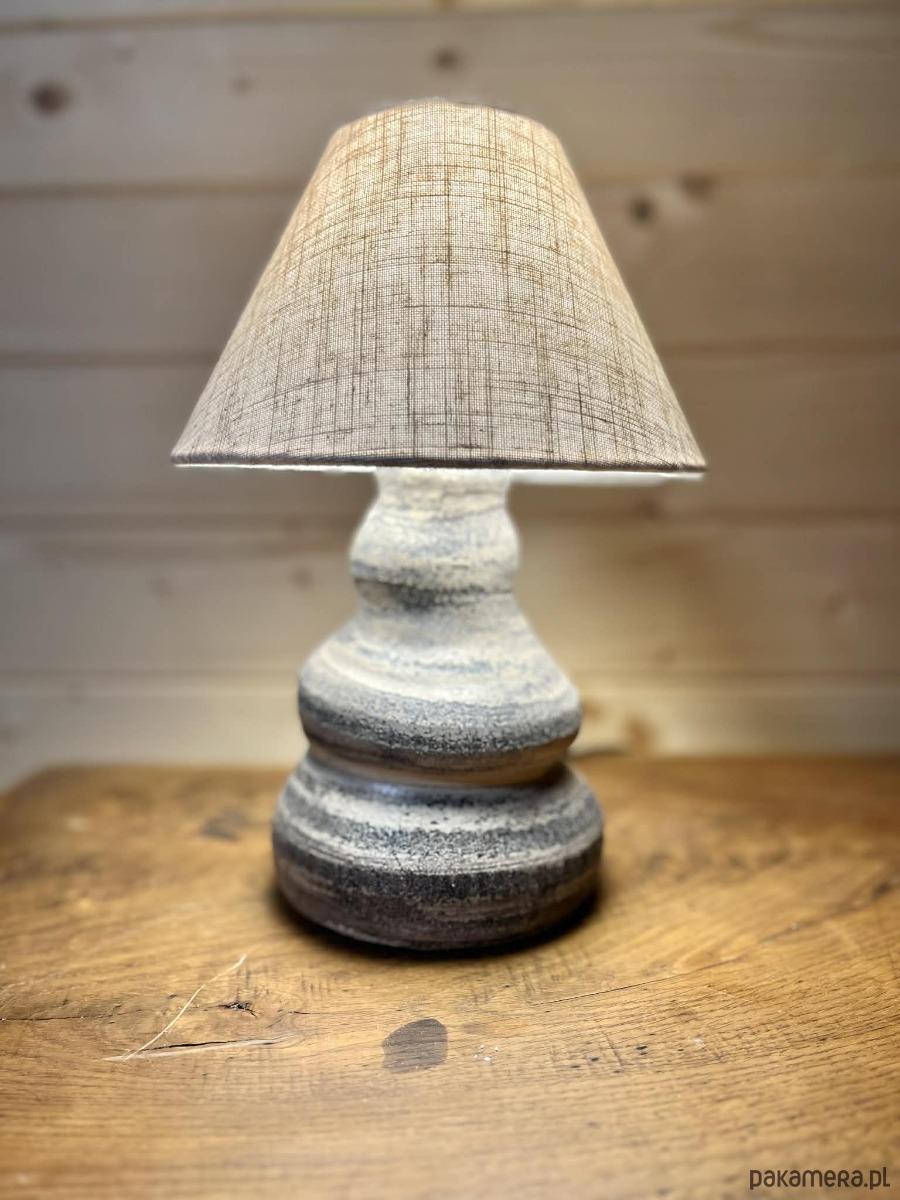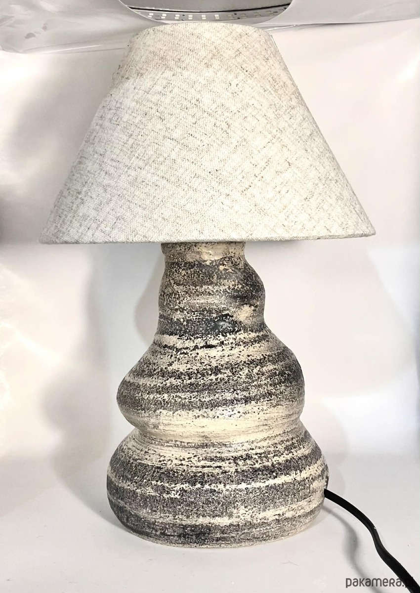 Lampa stołowa „Marmurkowa” to pojedynczy, niepowtarzalny egzemplarz wykonany w mojej pracowni ceramicznej. Jej rzeźbiarska podstawa została ręcznie wytoczona na kole garncarskim, warstwa po warstwie, z dbałością o każdy detal. Charakterystyczny, marmurkowy rysunek powstał w wyniku autorskiej techniki łączenia mas ceramicznych — nie ma dwóch takich samych form, a ten konkretny model jest absolutnie jedyny w swoim rodzaju.