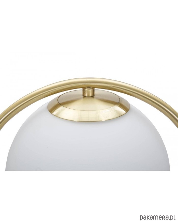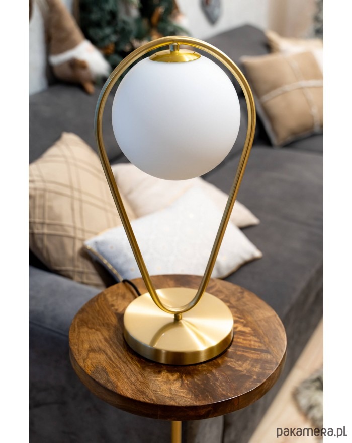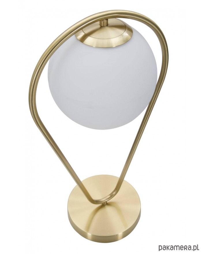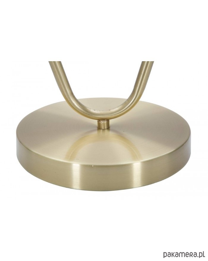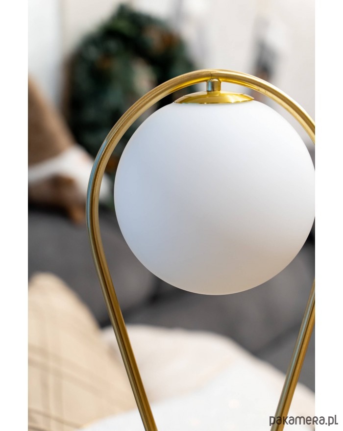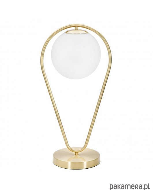 Piękna lampka stołowa ma oryginalny kształt odwróconej kropli. Stelaż został wykonany z metalu w złotym kolorze. Biały, szklany klosz rozprasza światło w delikatny sposób. Niewielkie wymiary powodują, że jest kompaktowa i idealnie pasuje do różnych miejsc w domu. Niezależnie od tego czy ustawimy ją w salonie czy sypialni stworzy miły nastrój w pomieszczeniu.