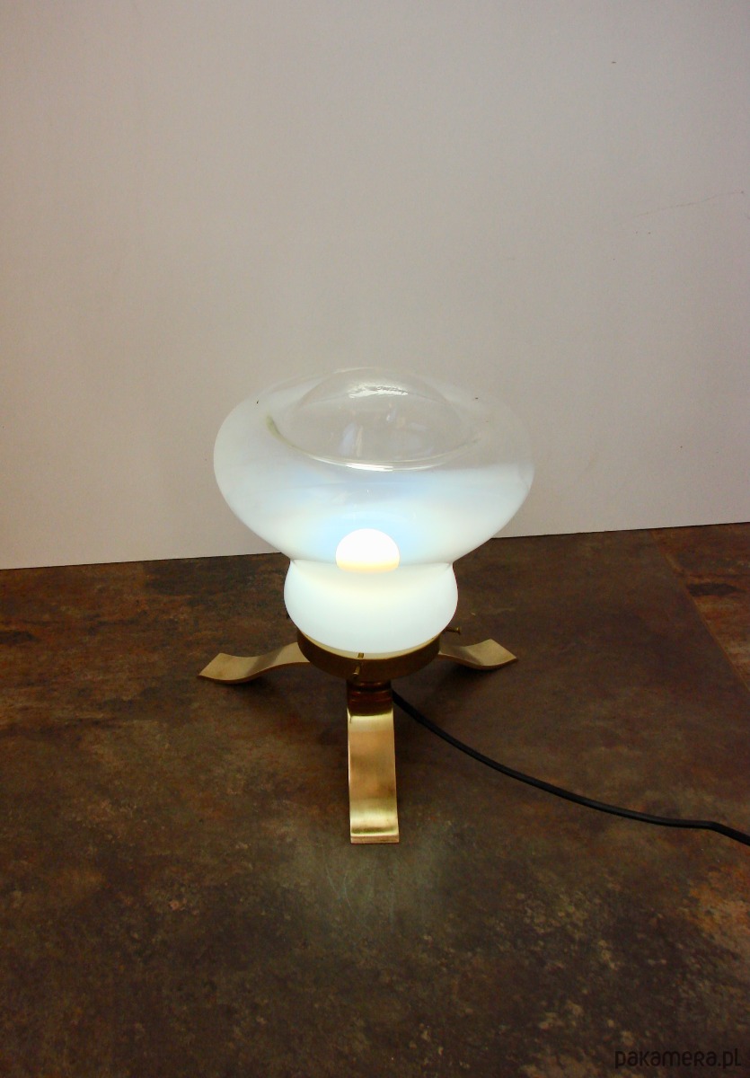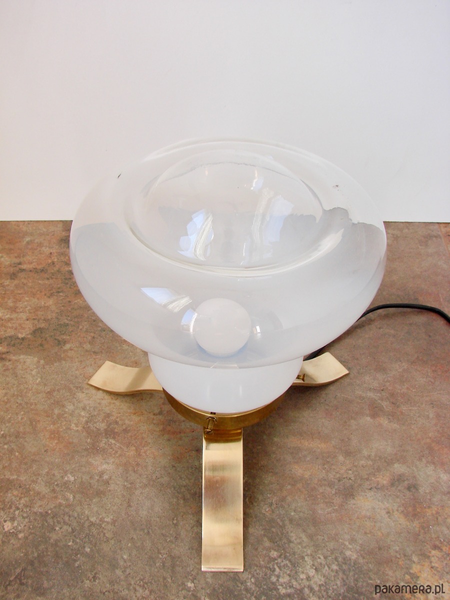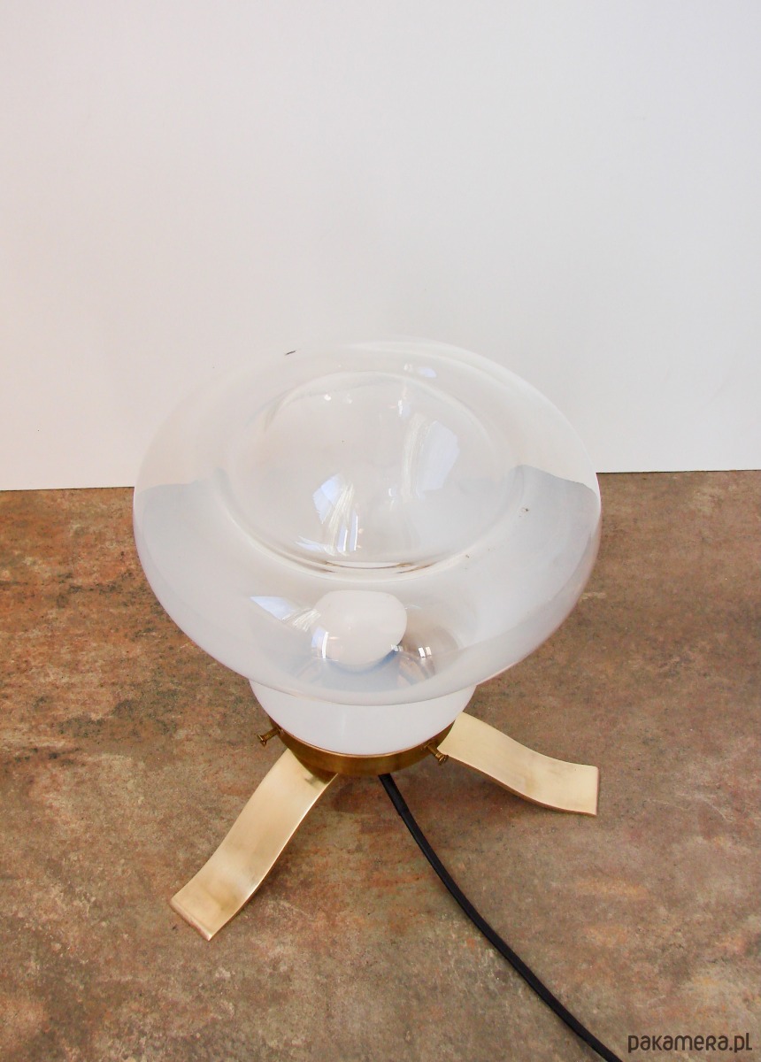 Lampa stołowa Mid Century lata 70. mosiądz i szkło E27