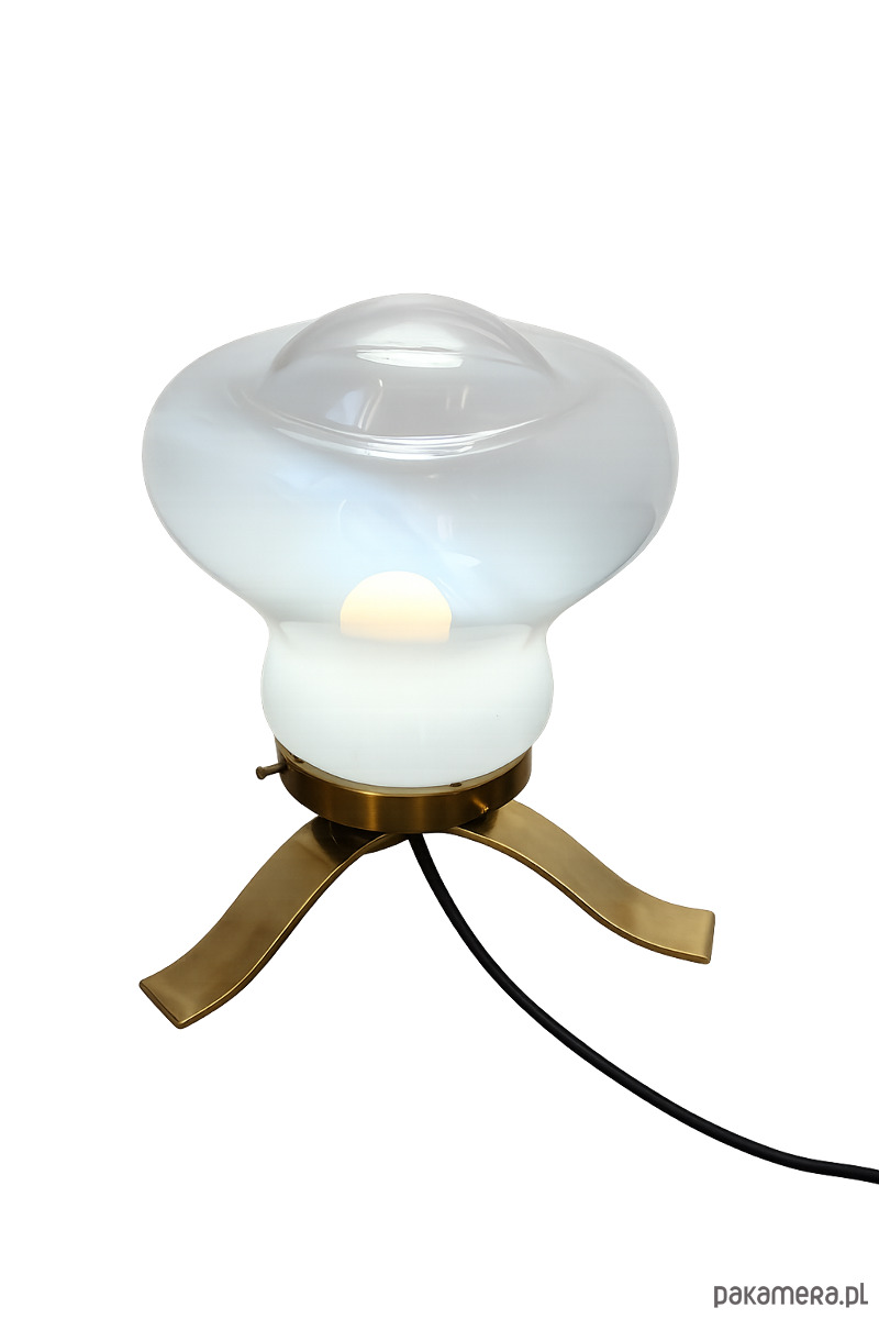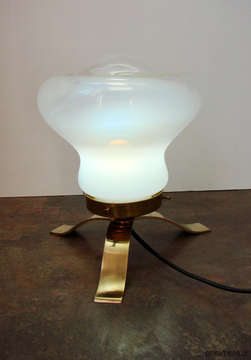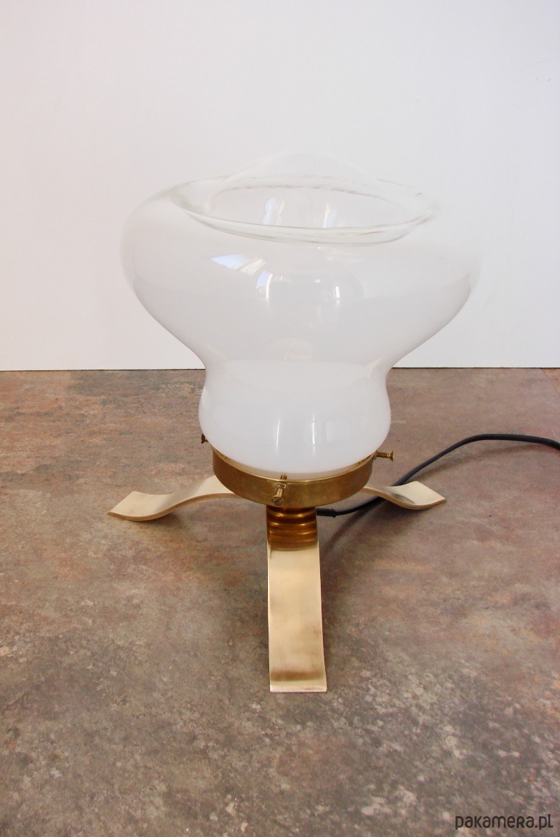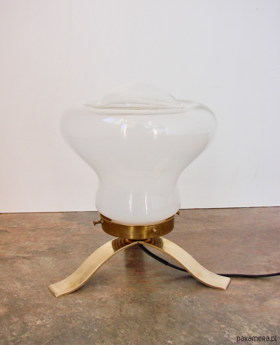 Lampa stołowa Mid Century lata 70. mosiądz i szkło E27