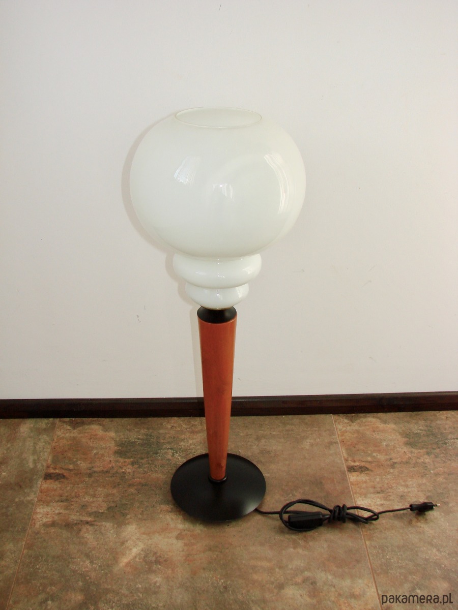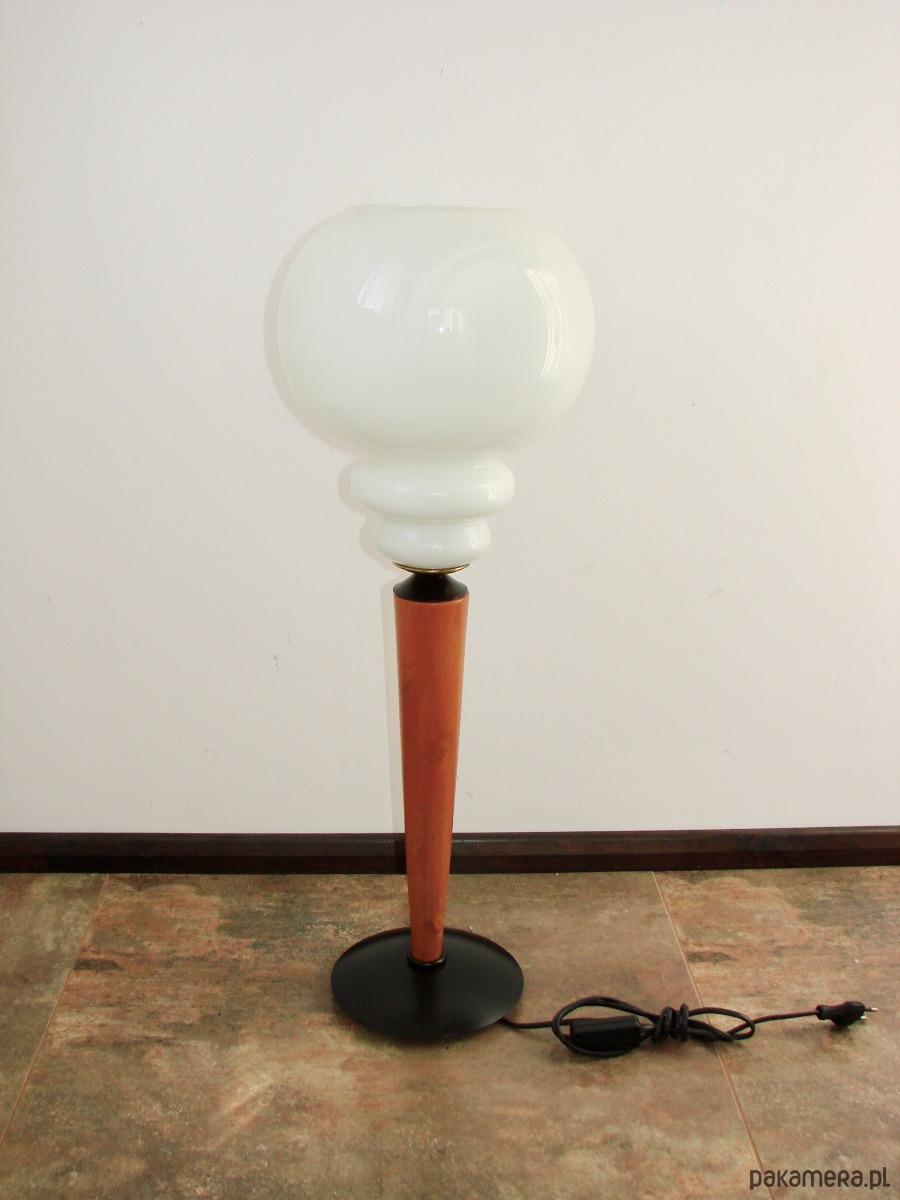 Lampa stołowa modern, lata 70., metal, drewno i szkło, E27