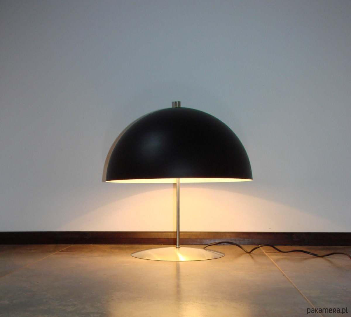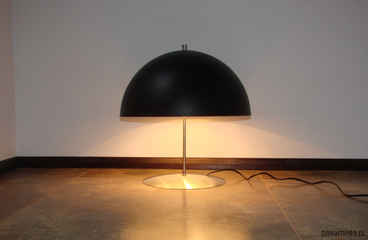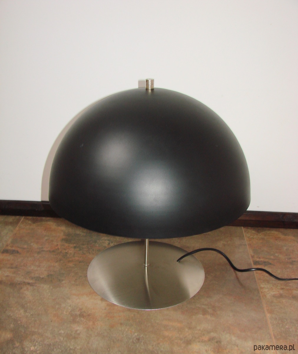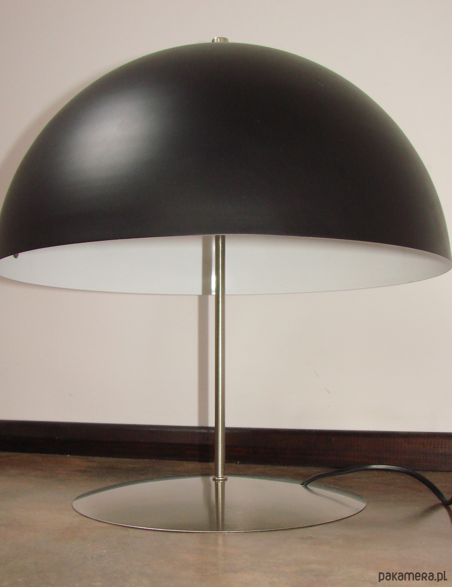 Charakterystyczny, szeroki klosz w formie kopuły w czarnym kolorze nadaje lampie elegancji i sprawia, że światło jest miękkie oraz równomiernie rozproszone. Wewnętrzna, jasna powierzchnia klosza dodatkowo potęguje efekt doświetlenia.