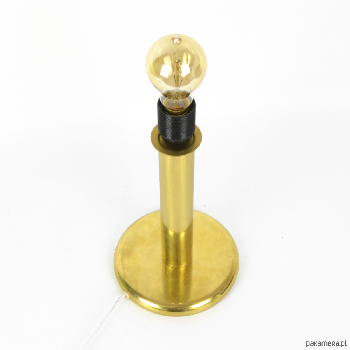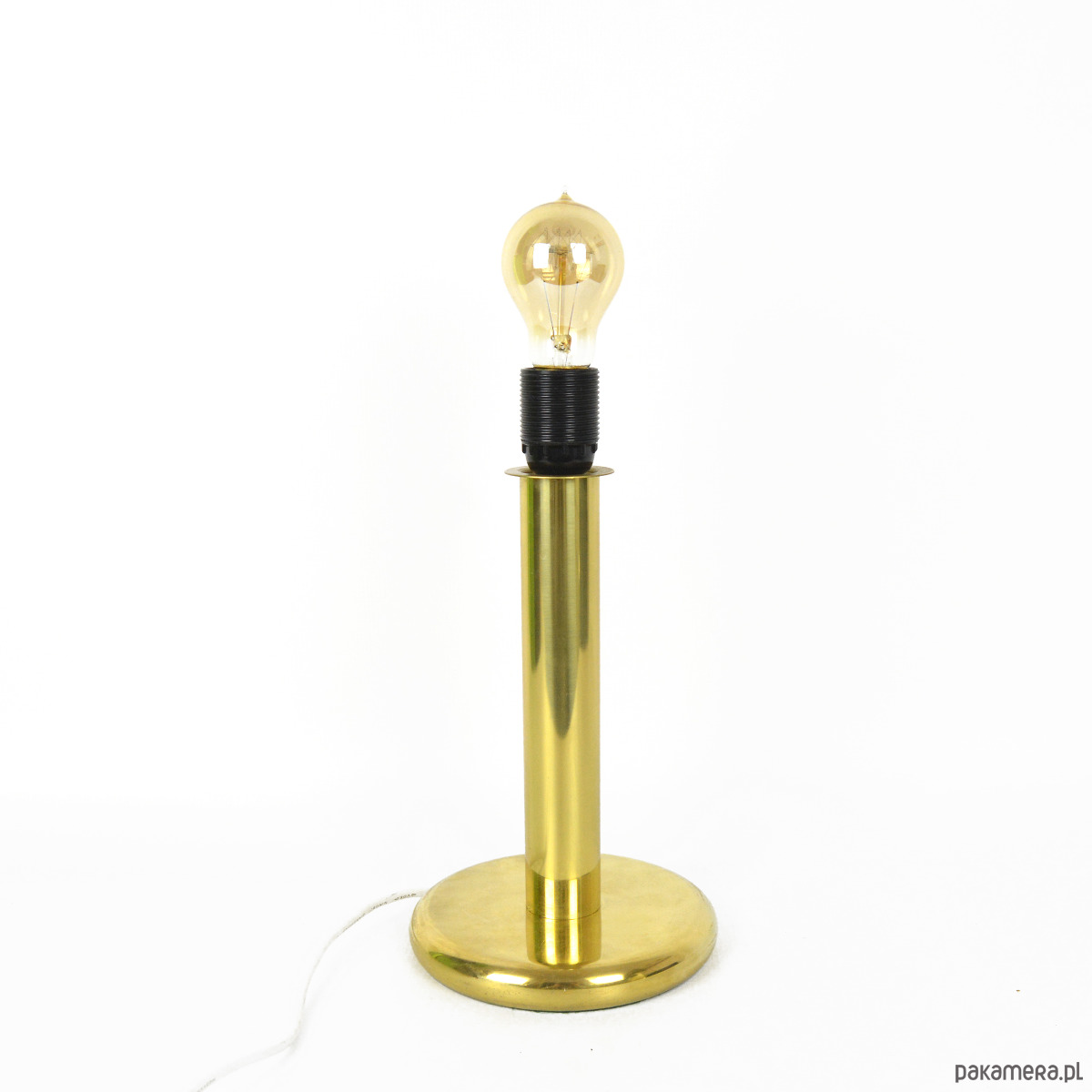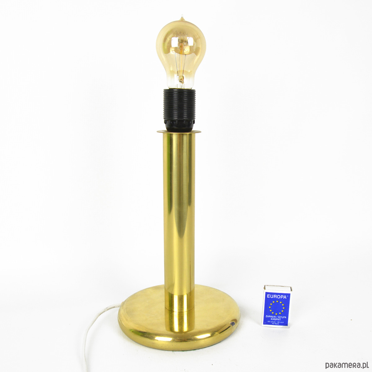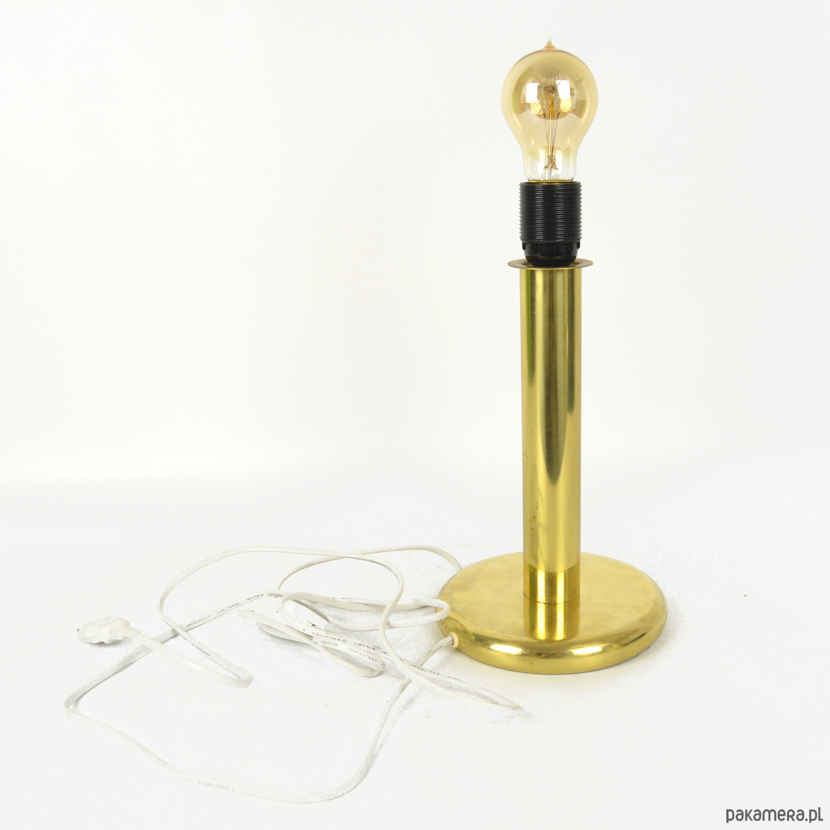 Niemiecka lampa stołowa typ 747 produkcji ROGO Leuchten pochodzi z lat 80. Przedmiot zachowany jest w dobrym stanie. Lampa utrzymana w stylu hollywood regency wykonana jest z mosiądzu. Lampa w stanie wizualnym dobrym, ze śladami patyny. Przedmiot w pełni sprawny technicznie, instalacja została wymieniona. Żarówka na gwint E27, wtyczka europejska. Przedmiot z zachowaną naklejką sygnaturową. Lampa sprzedawana bez żarówkiWymiary:wysokość 31 cm | średnica podstawy 16 cm