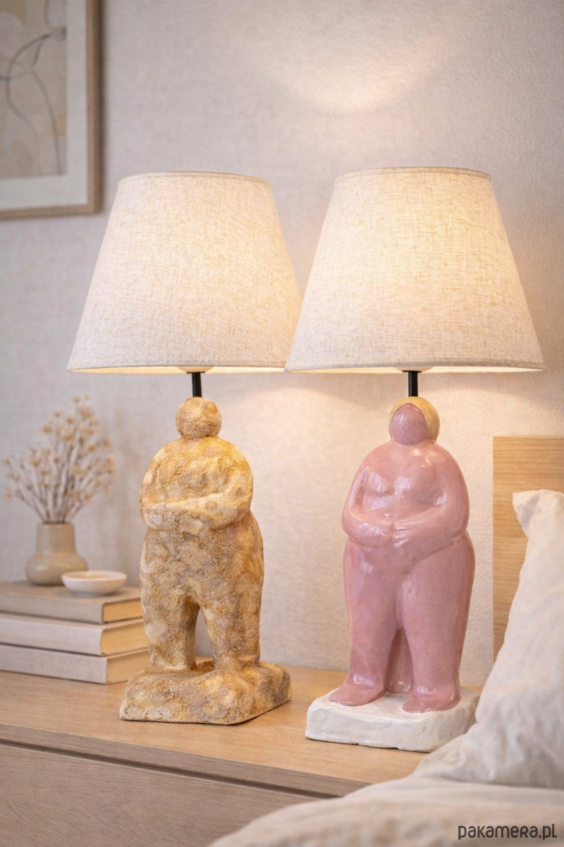 SHE • Stonebody, Matowa, surowa, jak skamielina. Symbol siły, stabilności i zakorzenienia w swojej prawdzie. Każda lampa ma 50 cm wysokości (z abażurem), a abażur o średnicy 25 cm daje miękkie, rozproszone światło. Obie wersje będą dostępne w stałej ofercie sklepu. To nie tylko lampy — to manifest. Światło, które przypomina, że kobiece ciało nie potrzebuje zgody, by istnieć.