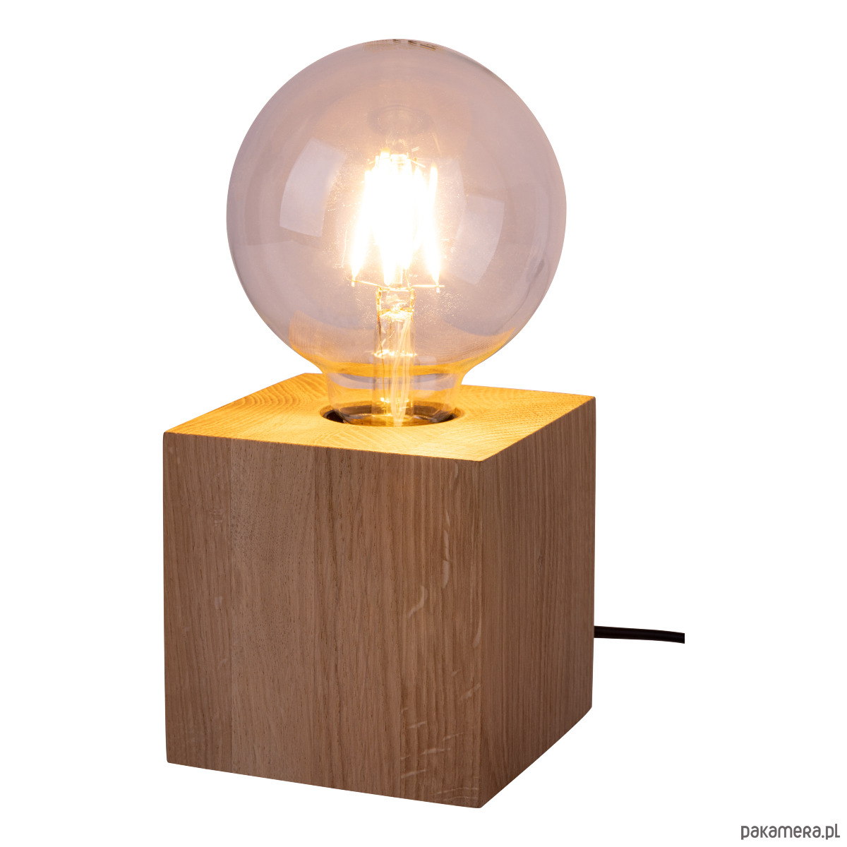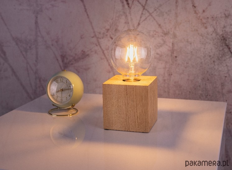 Naturalne materiały i minimalistyczny design sprawi, że pokochasz tą lampkę!Lampka stołowa na gwint E27 wykonana z drewna to elegancki i stylowy dodatek do każdego wnętrza. Jej podstawa w kształcie kwadratu o wymiarach 10x10 cm nadaje jej nowoczesny wygląd, który doskonale współgra z dekoracyjnymi dużymi żarówkami. Długość przewodu zasilającego wynosząca 140 cm pozwala na elastyczne ustawienie lampy na biurku, komodzie czy stoliku nocnym, bez konieczności korzystania z przedłużacza. Lampka ta doskonale sprawdzi się również jako element dekoracyjny w salonie, jadalni czy sypialni.