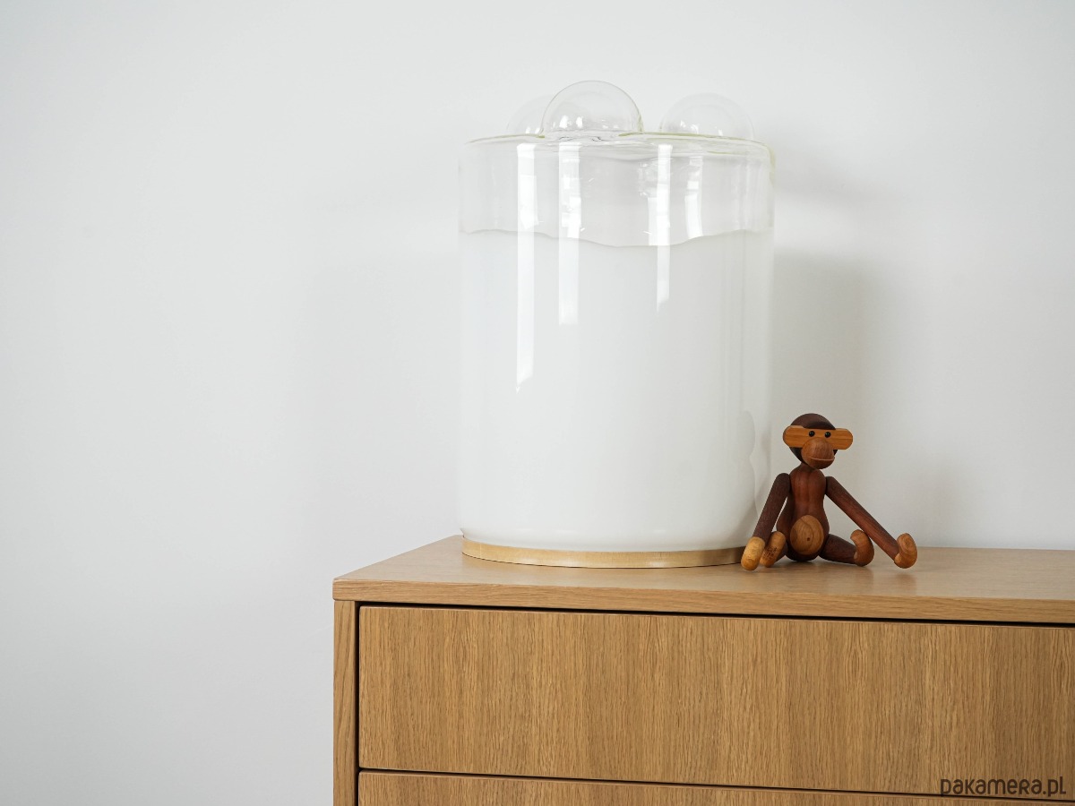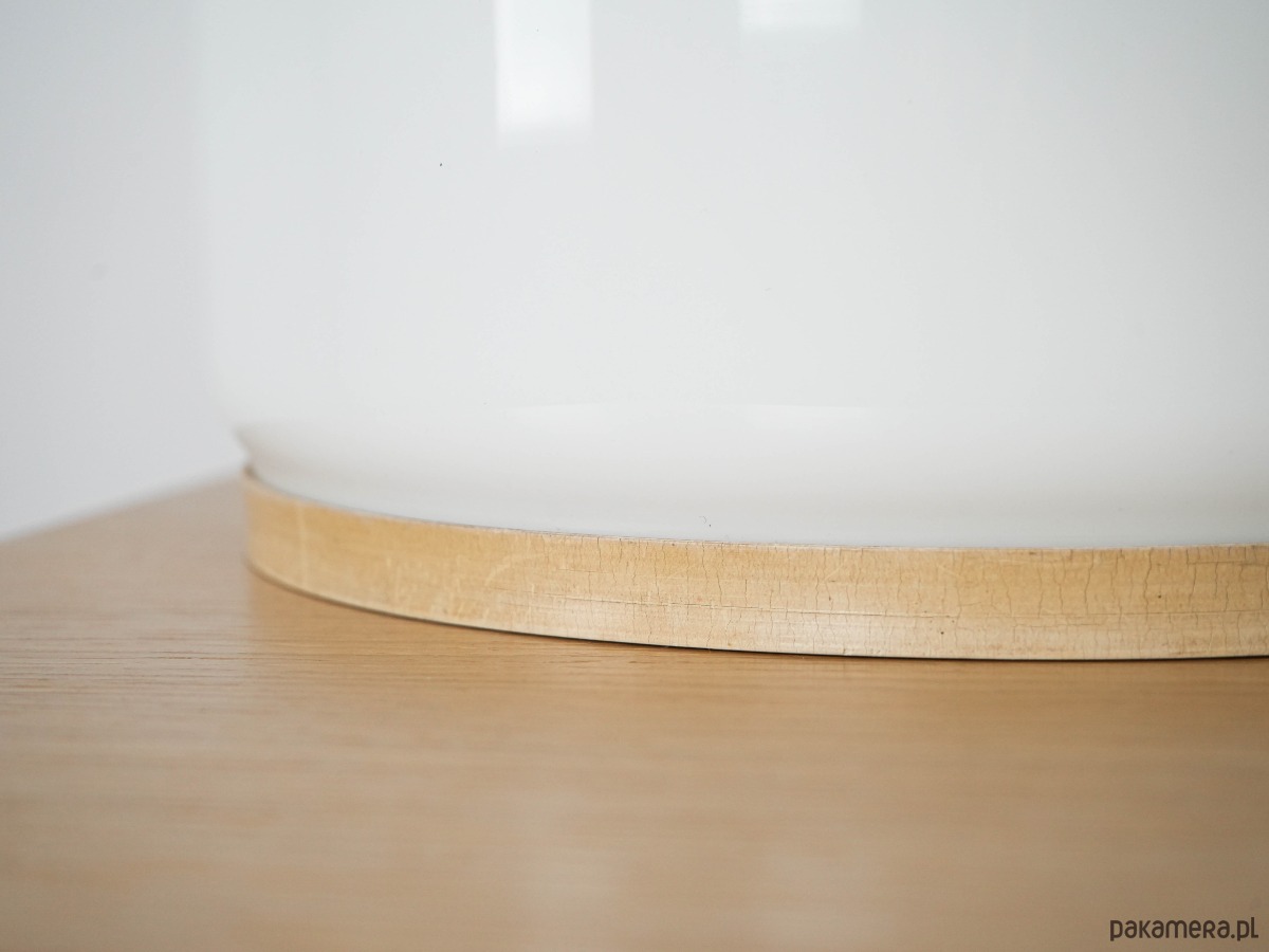 Lampa stołowa wykonana z mlecznego i przezroczystego szkła, na podstawie z metalu w kolorze złotym. Lampa doskonale wkomponuje się w każde wnętrze, nadając mu wyjątkowy charakter i przytulny klimat.