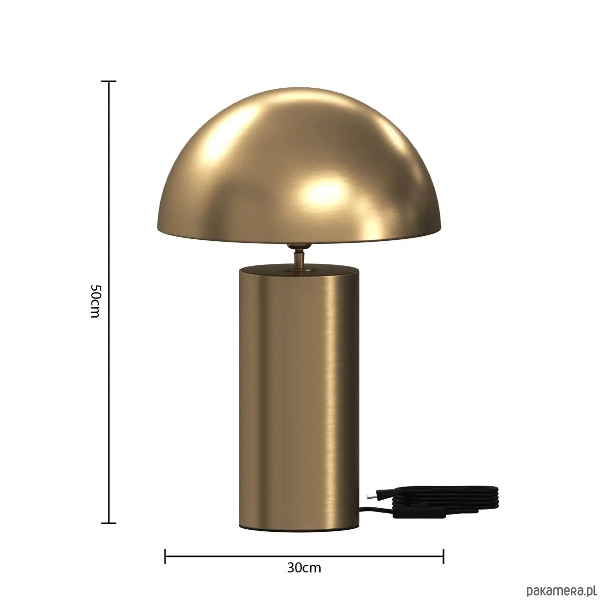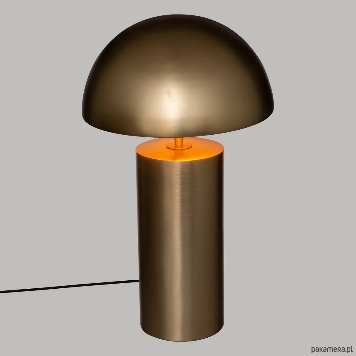 Niezwykła lampa stołowa kształtem przypominająca grzyba. Wykonana w całości z metalu. W kolorze złotym. Elegancki dodatek na biurko.