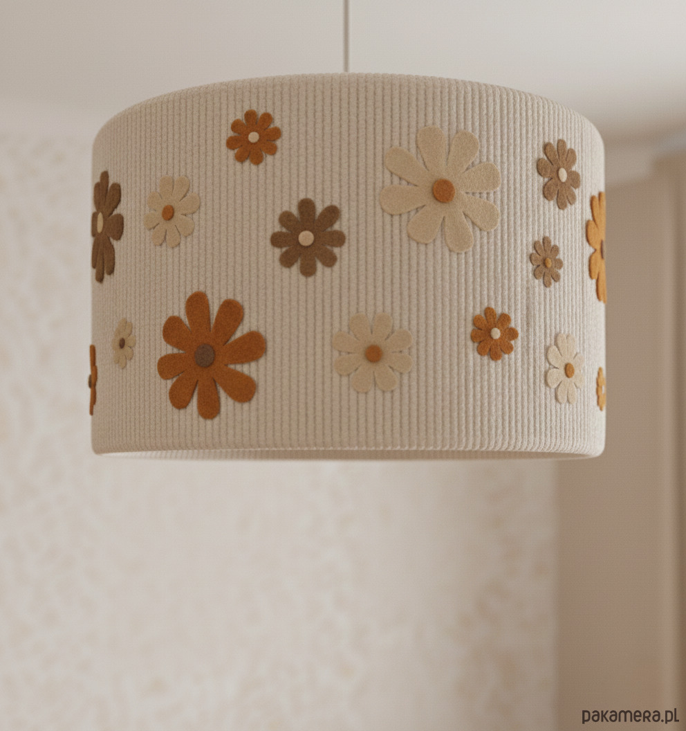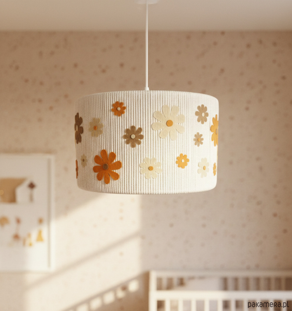 Wprowadź do pokoju dziecka delikatność natury i ciepłe, miękkie światło. Ta ręcznie wykonana lampa z motywem filcowych kwiatków tworzy spokojną, przytulną atmosferę sprzyjającą wyciszeniu, zasypianiu i codziennym rytuałom. To dekoracyjne światło zaprojektowane z myślą o wnętrzach pełnych lekkości, harmonii i naturalnego piękna.