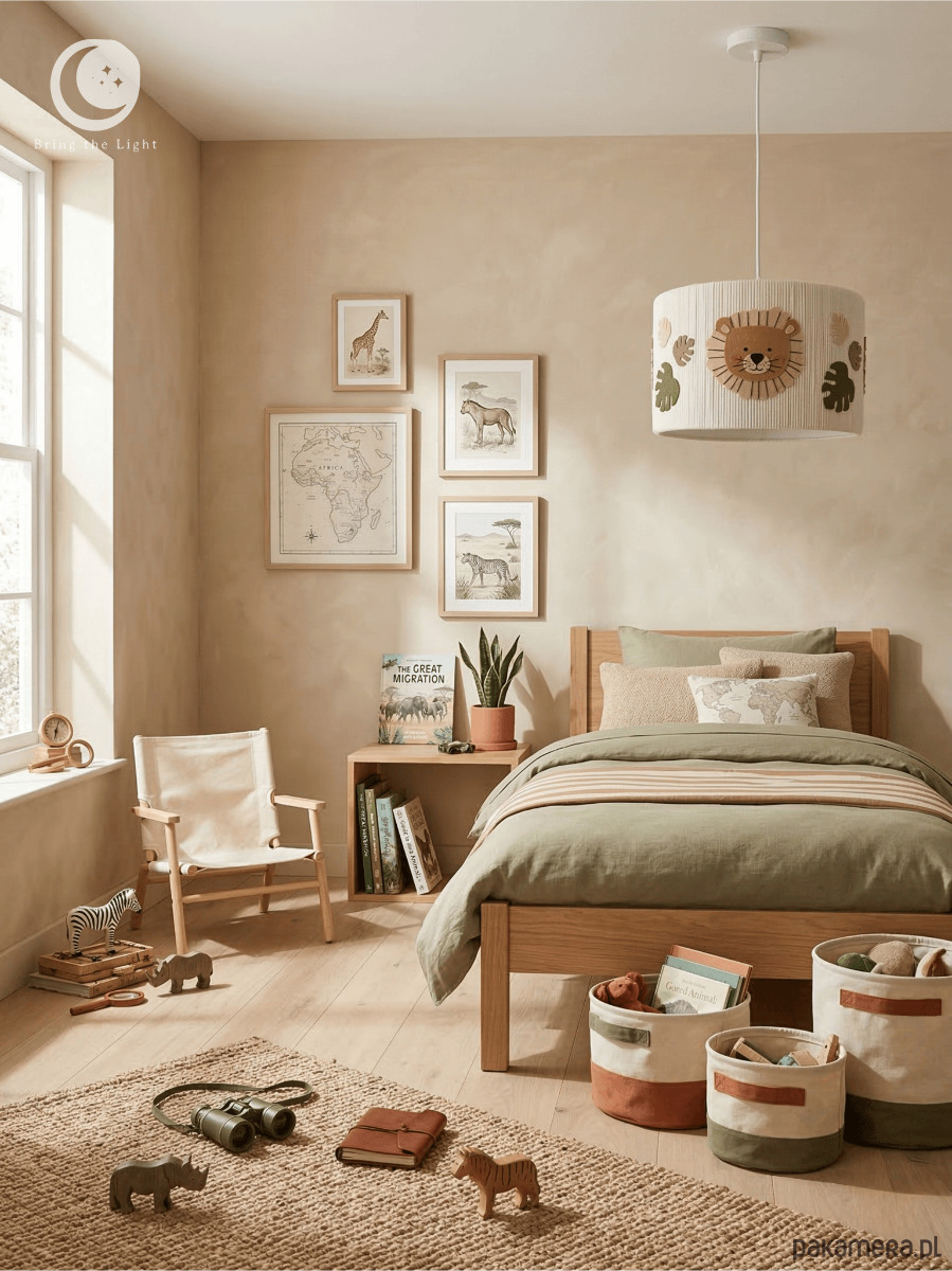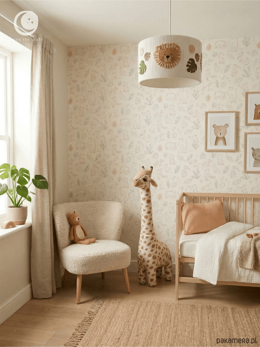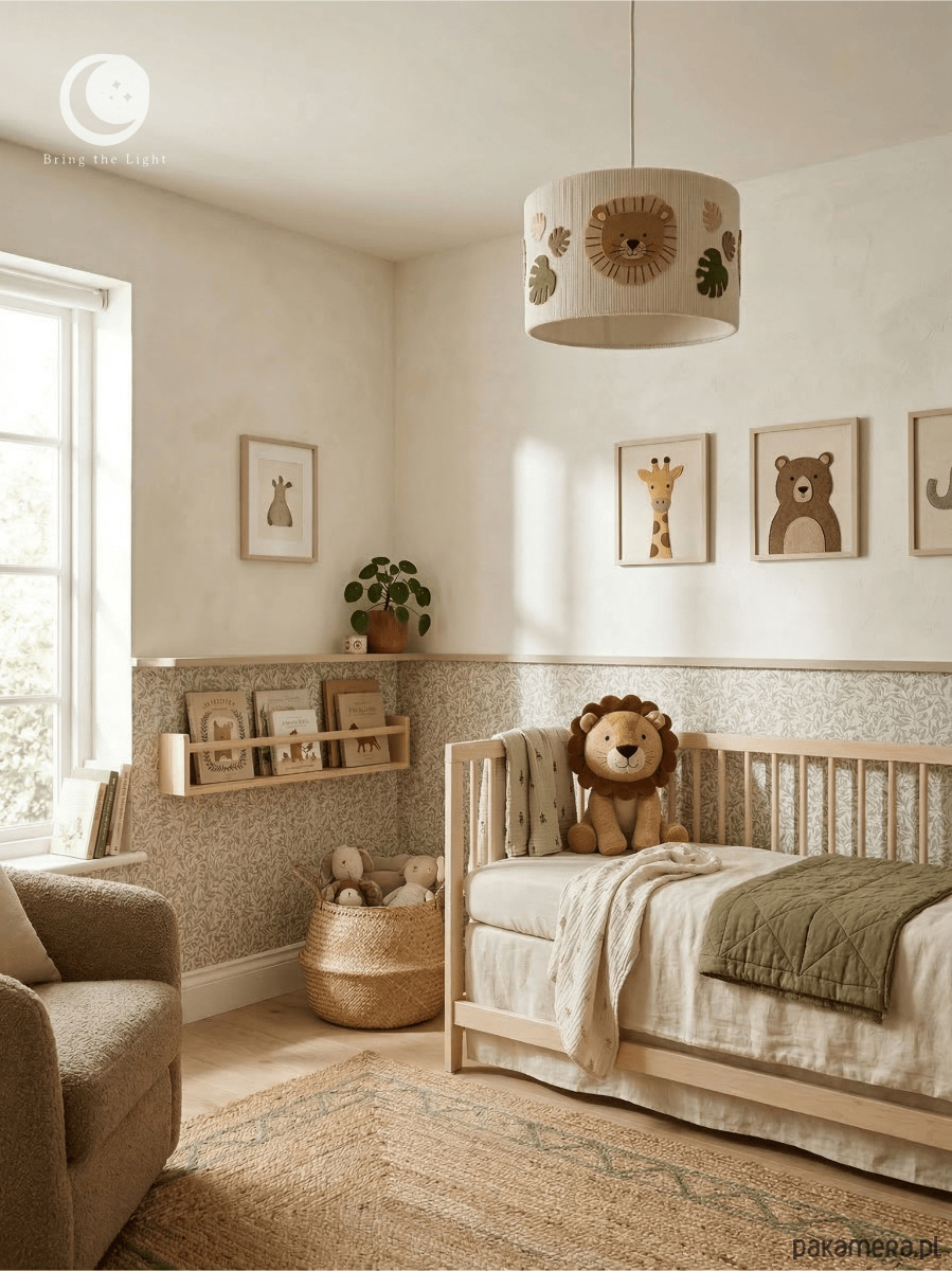 Wprowadź do pokoju dziecka odrobinę przygody i ciepłe, miękkie światło. Ta ręcznie wykonana lampa z motywem lwa i roślinnych detali tworzy przytulną, spokojną atmosferę sprzyjającą wyciszeniu, zasypianiu i codziennym rytuałom. To wyjątkowa dekoracja inspirowana naturą, która pobudza wyobraźnię i nadaje wnętrzu charakteru.