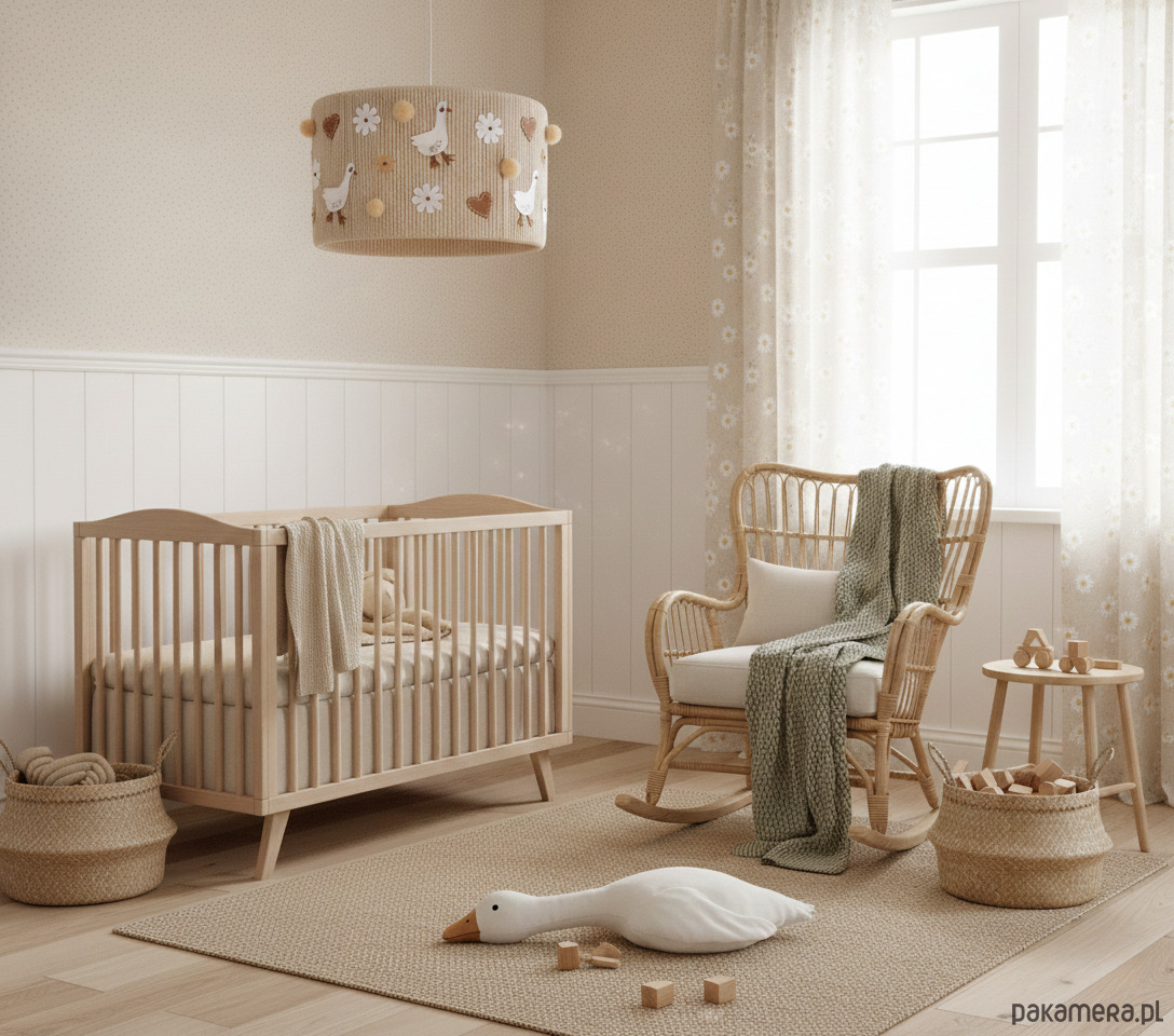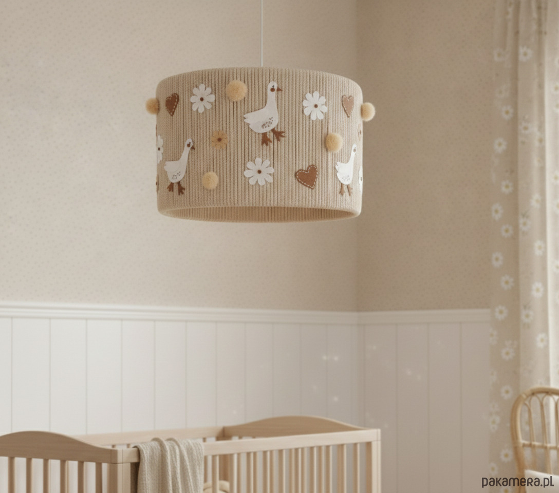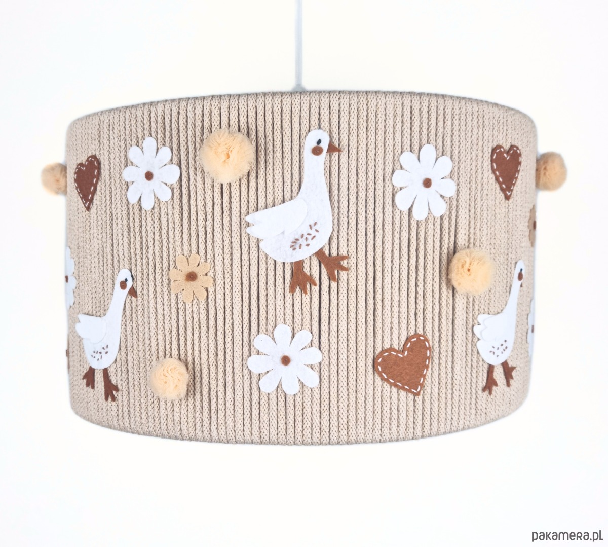 Wprowadź do pokoju dziecka ciepło, spokój i nutę sielskiej opowieści. Ta ręcznie wykonana lampa z motywem filcowych gąsek tworzy przyjazną, kojącą atmosferę, która sprzyja wyciszeniu, zasypianiu i spokojnym wieczornym rytuałom. To dekoracyjne światło zaprojektowane z myślą o wnętrzach pełnych naturalności, harmonii i dziecięcej delikatności.