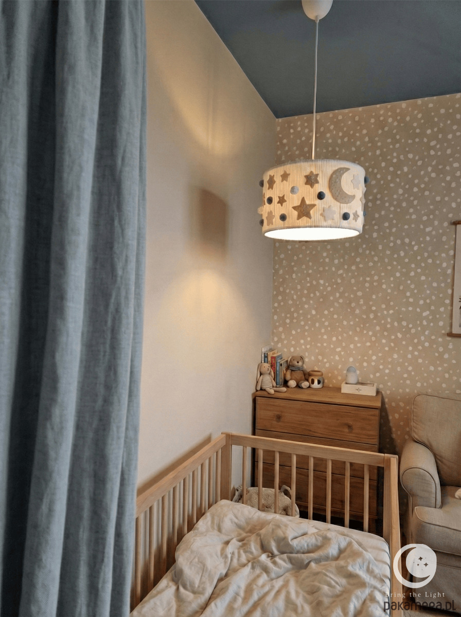 Wprowadź do pokoju dziecka miękkie, spokojne światło idealne na wieczorne wyciszenie. Ta ręcznie wykonana lampa tworzy przytulną atmosferę sprzyjającą zasypianiu, czytaniu bajek i nocnym rytuałom. To dekoracyjne światło zaprojektowane z myślą o chwilach bliskości, ciszy i poczucia bezpieczeństwa.