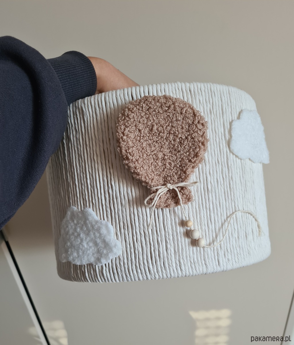 Elementy lampy zostały wykonane z przyjemnej w dotyku tkaniny bouclé, która nadaje całości miękkiego, przytulnego charakteru. Dzięki temu lampa doskonale pasuje do aranżacji w stylu skandynawskim, boho oraz dziecięcych wnętrz inspirowanych naturą.