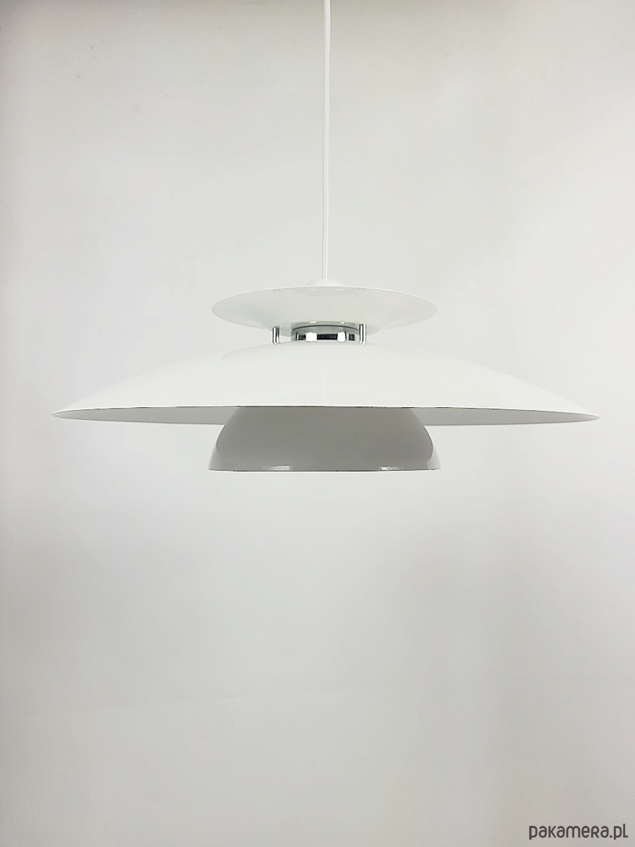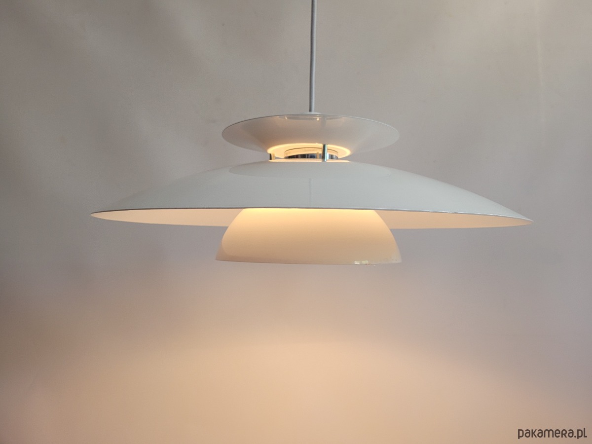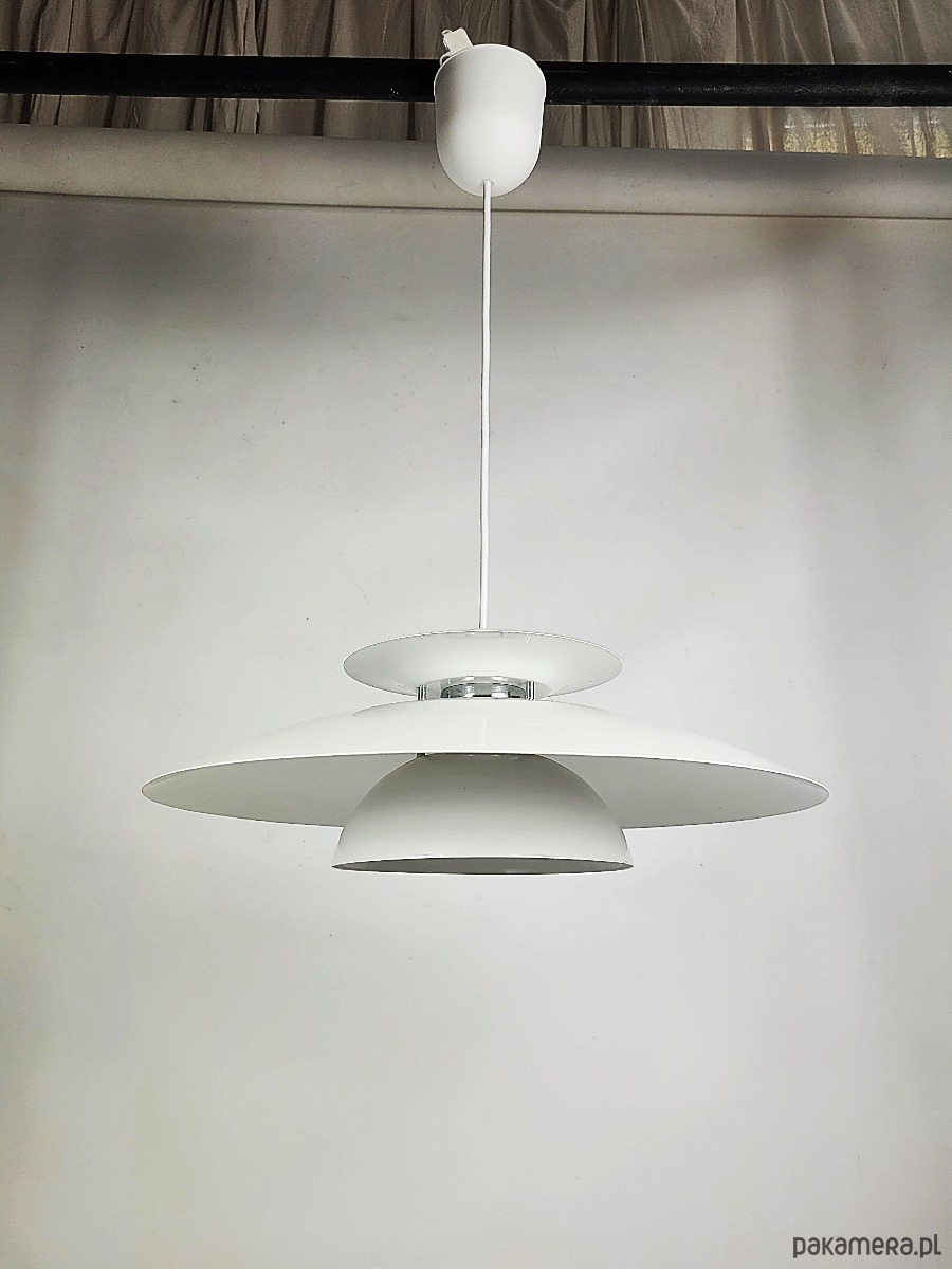 Skandynawska lampa wisząca marki Belid z lat 70.Lampa w stanie dobrym posiada minimalne ślady czasu jak lekkie przetarcie na rancie talerza.