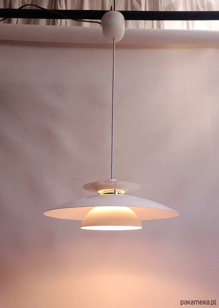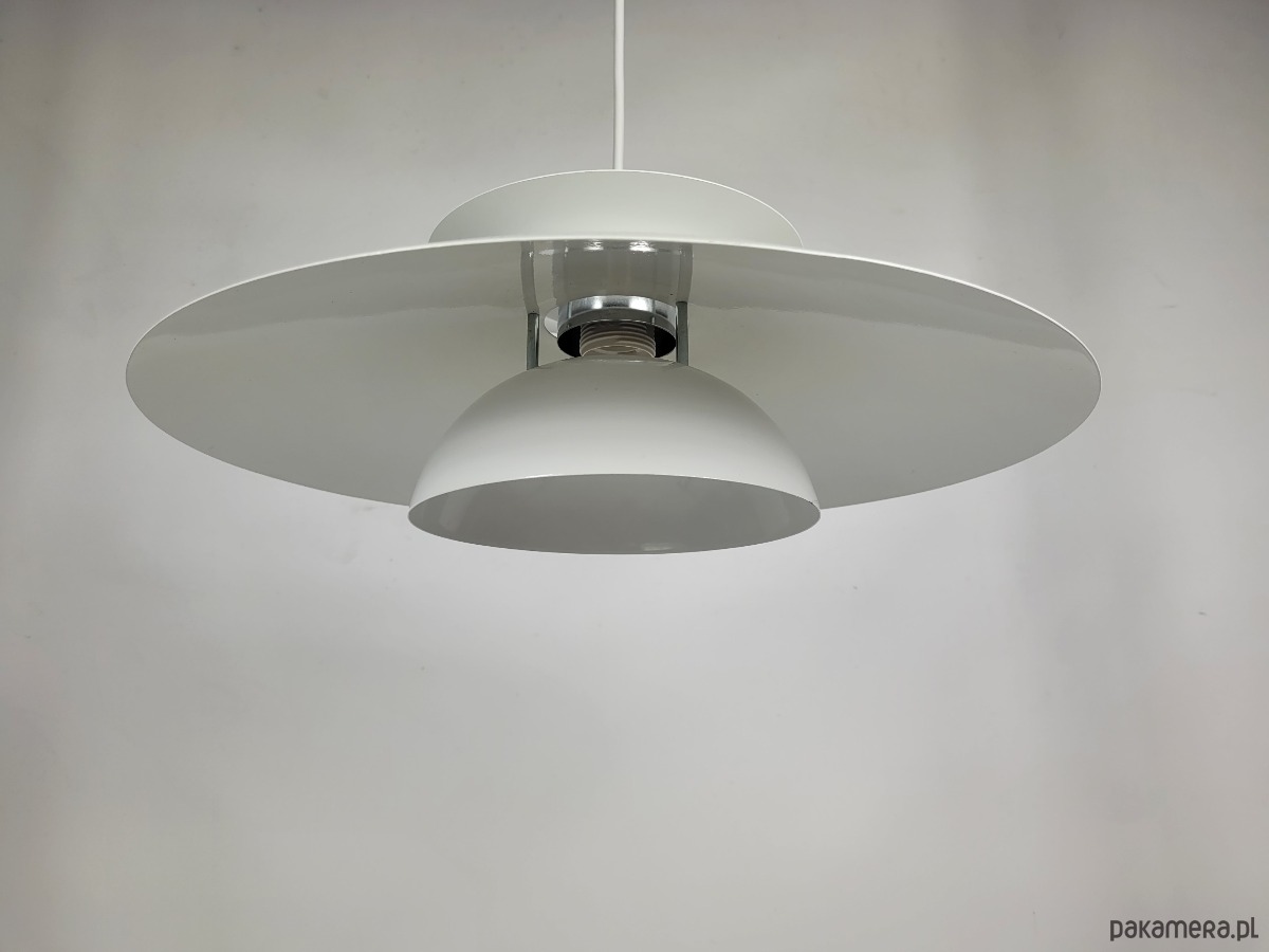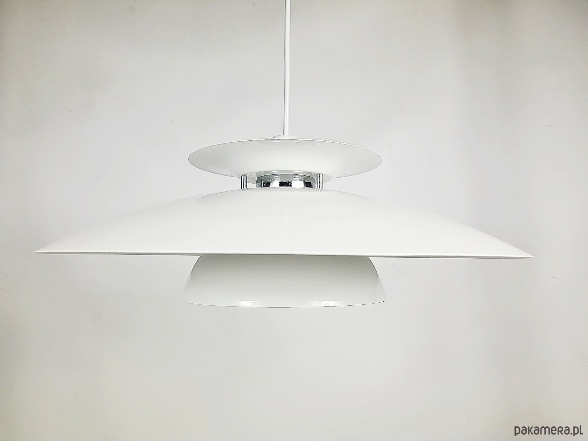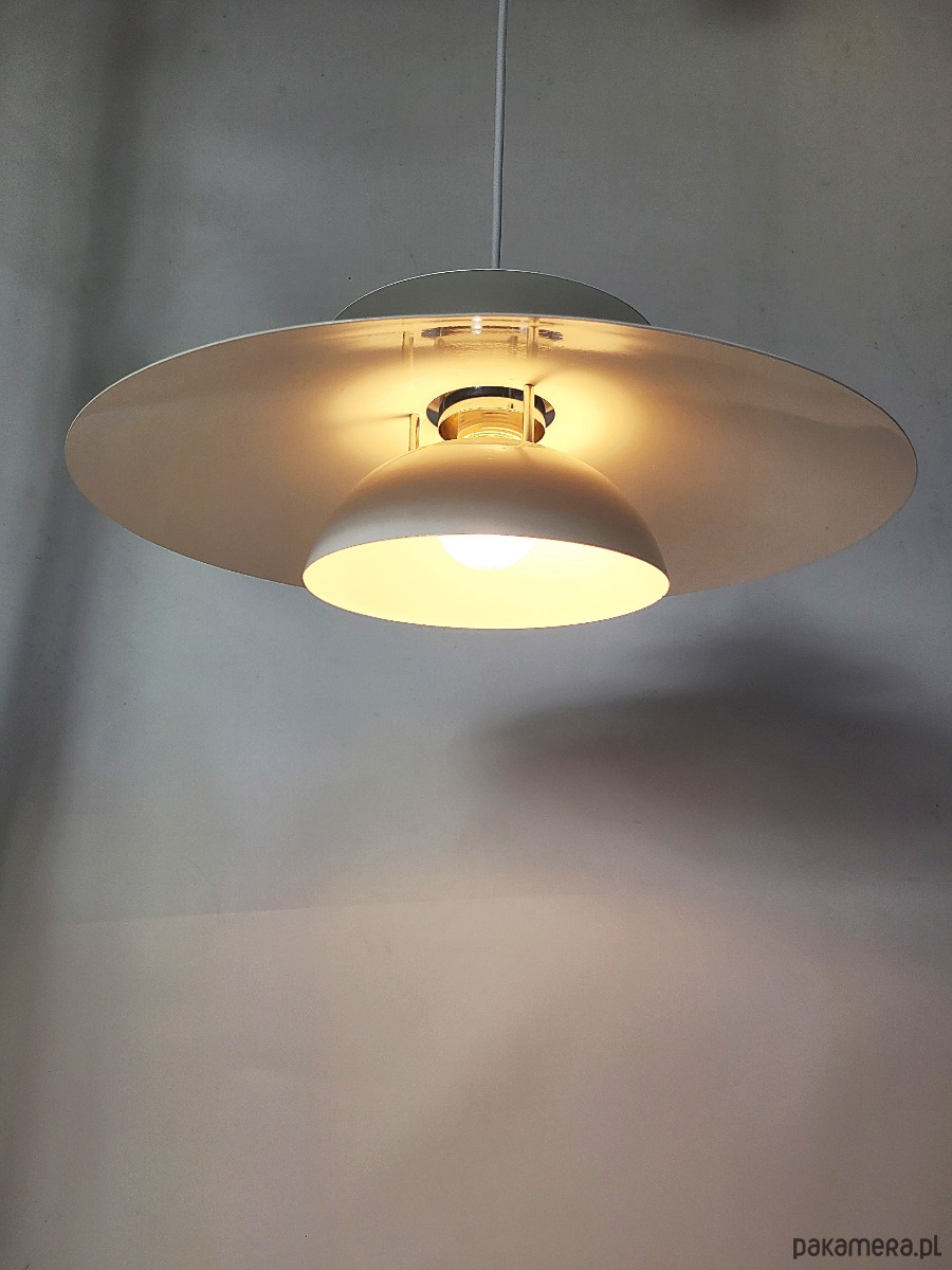 Skandynawska lampa wisząca marki Belid z lat 70.Lampa w stanie dobrym posiada minimalne ślady czasu jak lekkie przetarcie na rancie talerza.