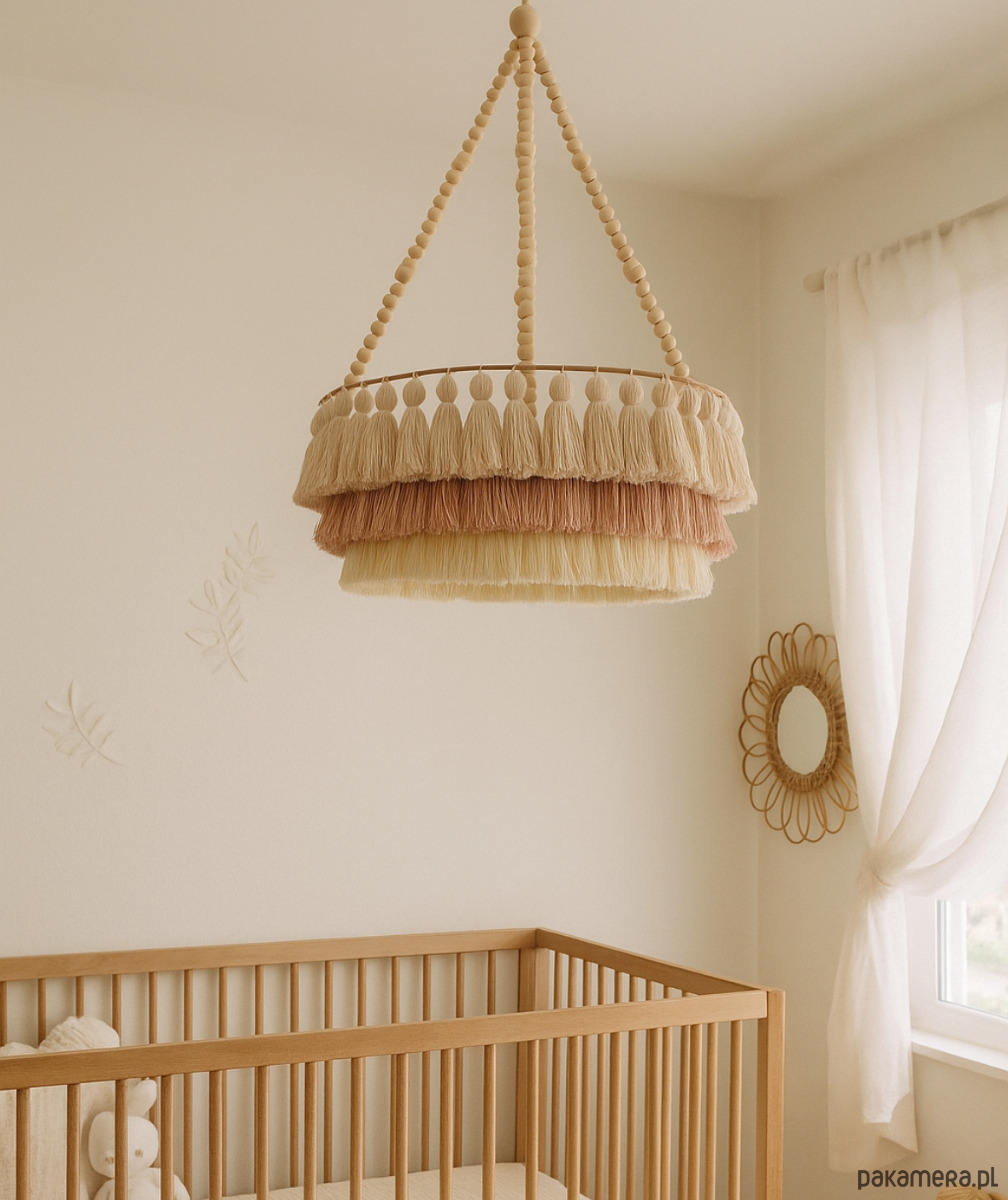 Lampa wisząca do pokoju dziecięcego, chwosty, koraliki