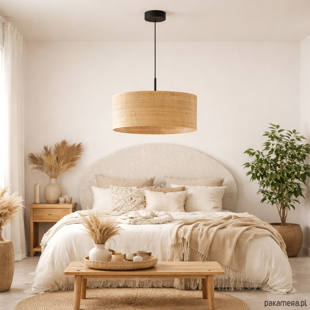 Lampa wisząca do sypialni w stylu boho SINTRA BOHO z rattanowym kloszem 40 cm