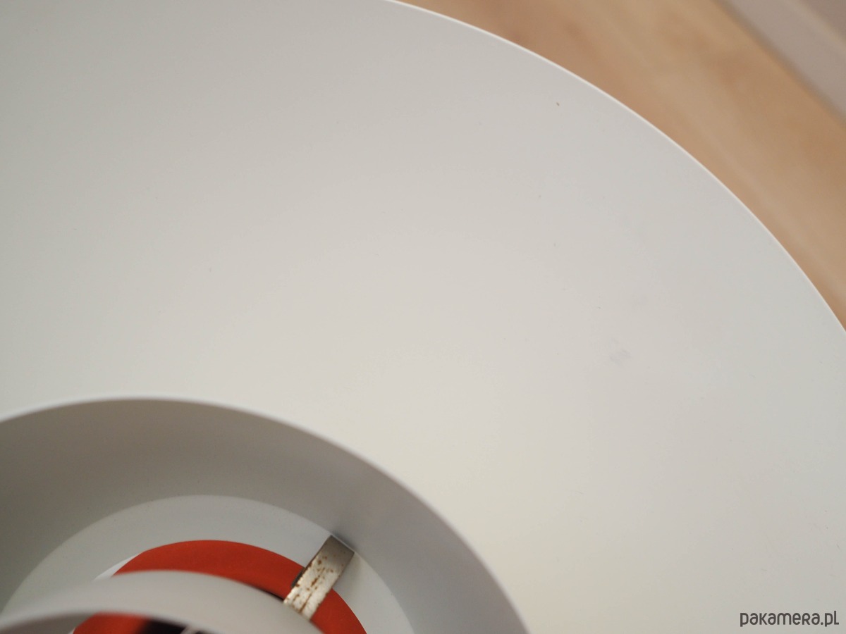 Wykonana z metalu w kolorze białym. Talerzowa konstrukcja nie jest tylko elementem designu, jej głównym założeniem jest rozproszenie światła w celu tworzenia przyjemnego nastroju wnętrza.