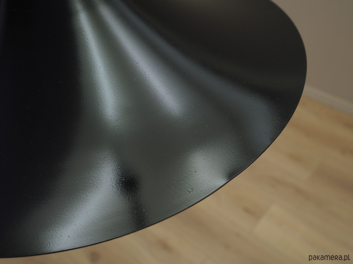Wykonana z metalu w kolorze czarnym. Unikatowa konstrukcja jest nie tylko elementem designu, jej głównym założeniem jest rozproszenie światła w celu stworzenia przyjemnego nastroju wnętrza.