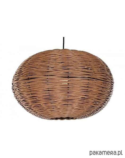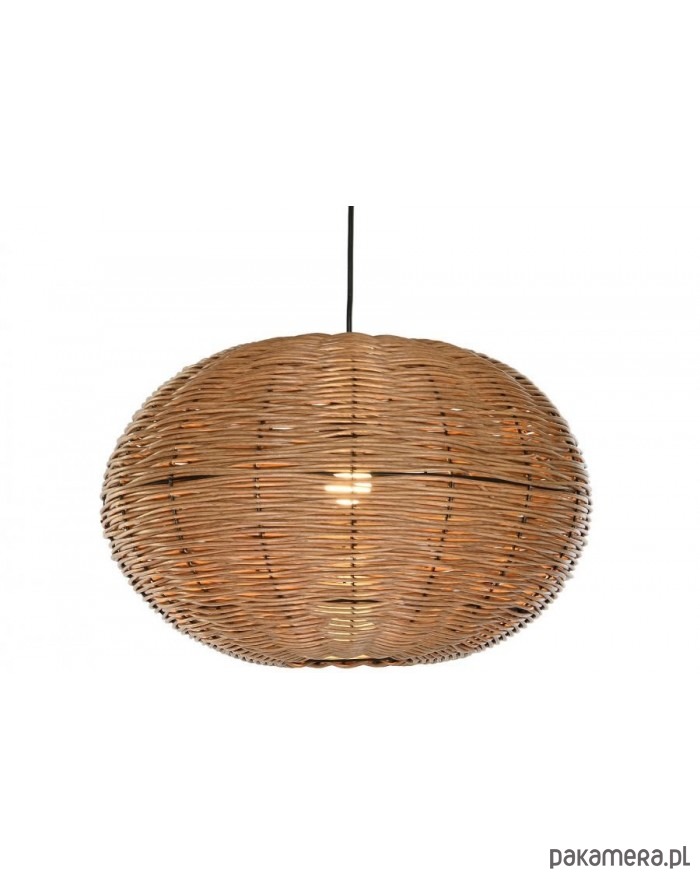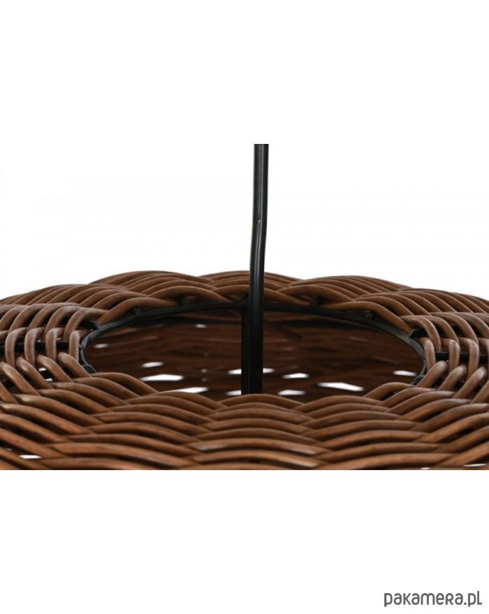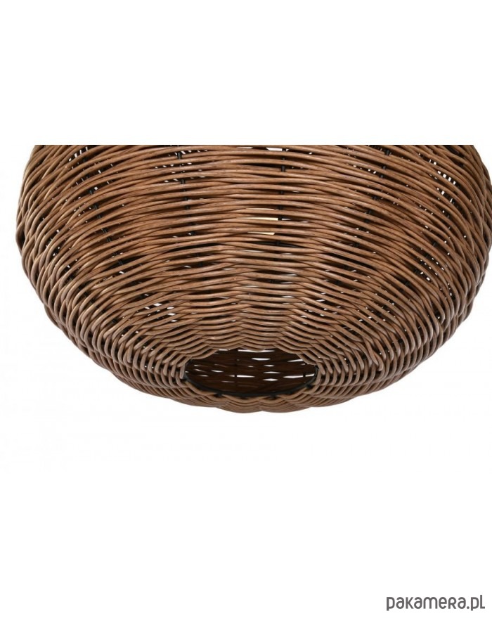 Oryginalna lampa wisząca wykonana z metalu i rattanu w kolorze brązowym. Ma kształt kuli. Nadaje się do salonu, kuchni czy jadalni.