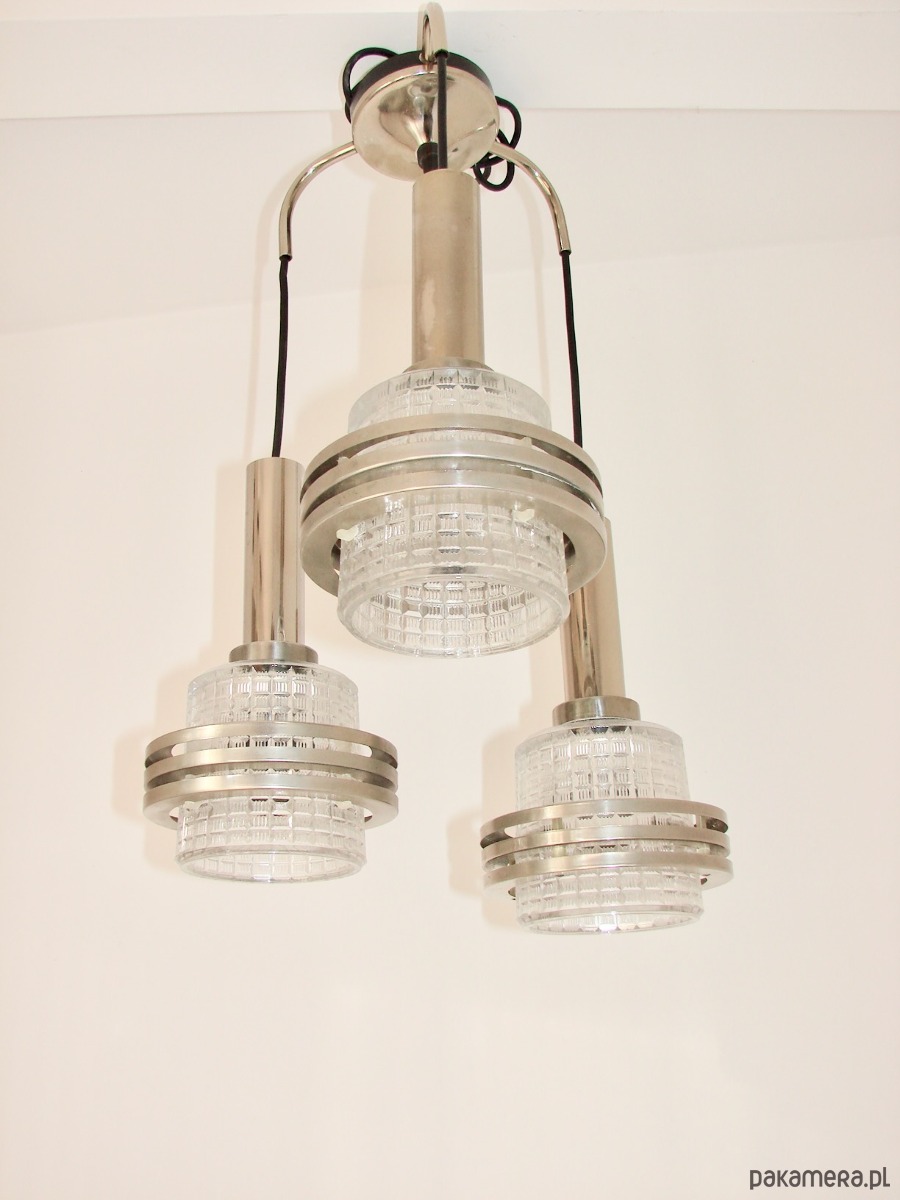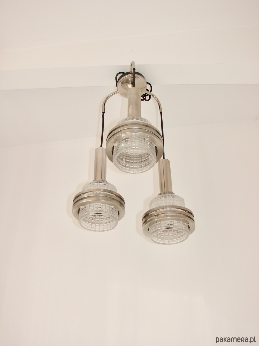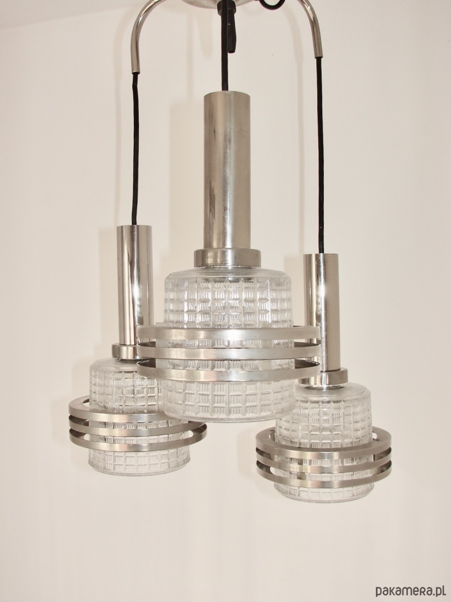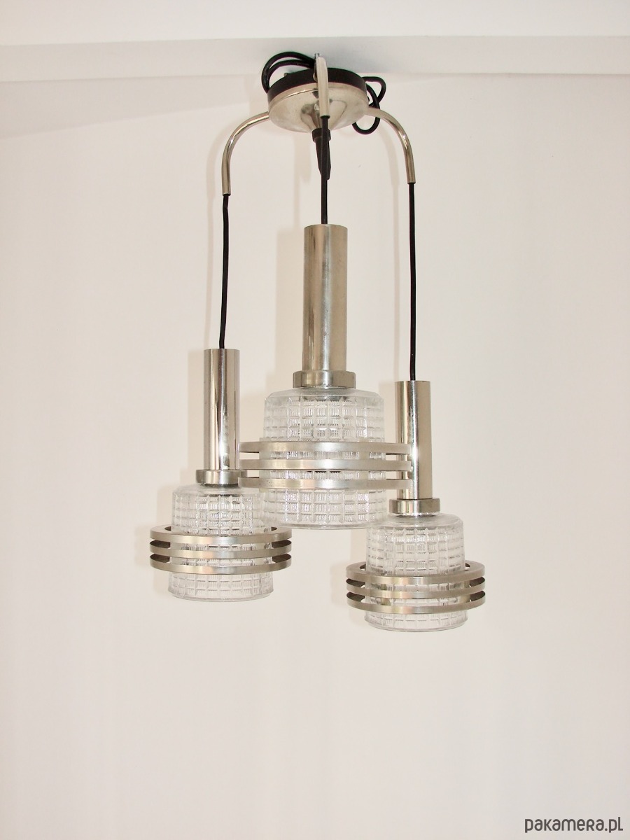 Lampa wisząca Modern, lata 70, metal i szkło, 3xE27