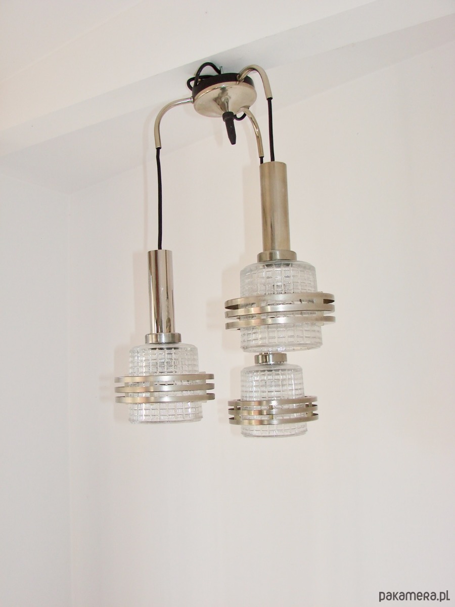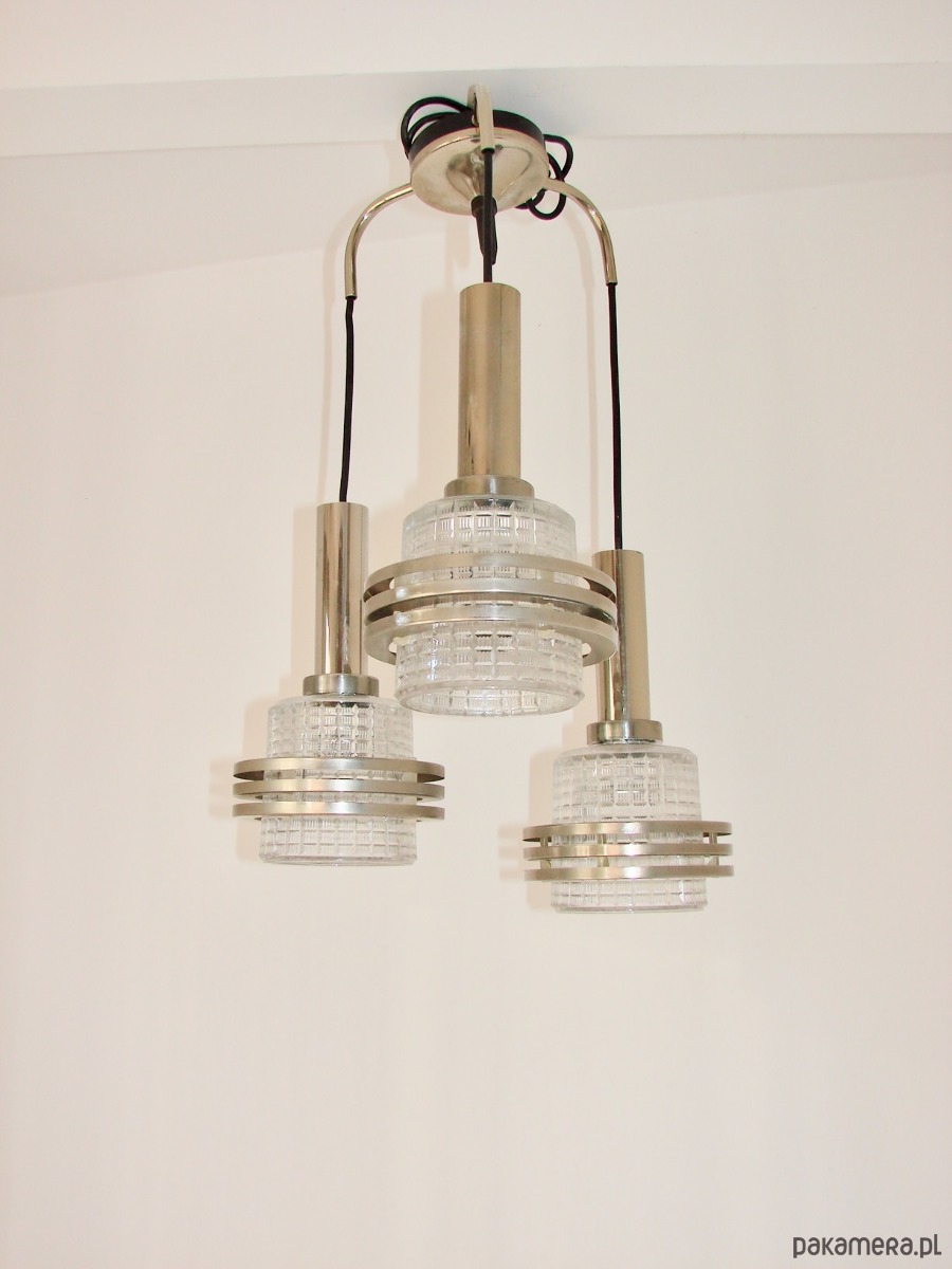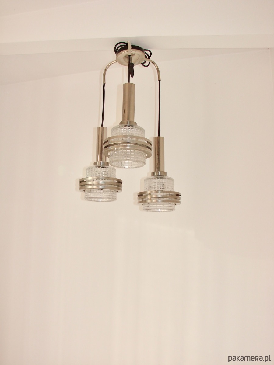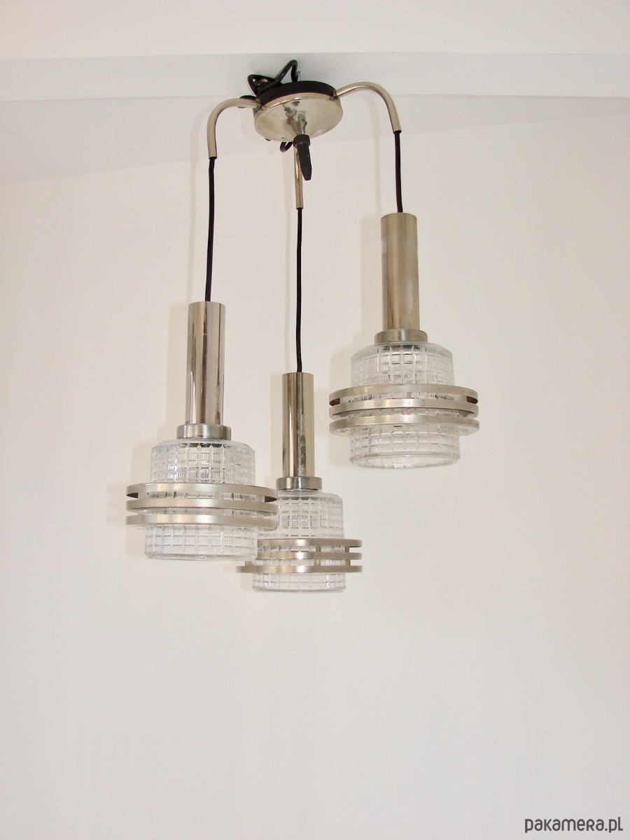Lampa wisząca Modern, lata 70, metal i szkło, 3xE27