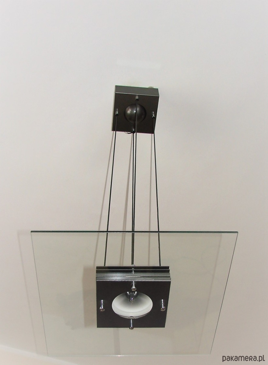 Szklany klosz równomiernie rozprasza światło, tworząc przyjemną, nienachalną atmosferę we wnętrzu. Prosta, nowoczesna forma sprawia, że lampa świetnie komponuje się z aranżacjami modern, minimalistycznymi, loftowymi oraz współczesnymi.