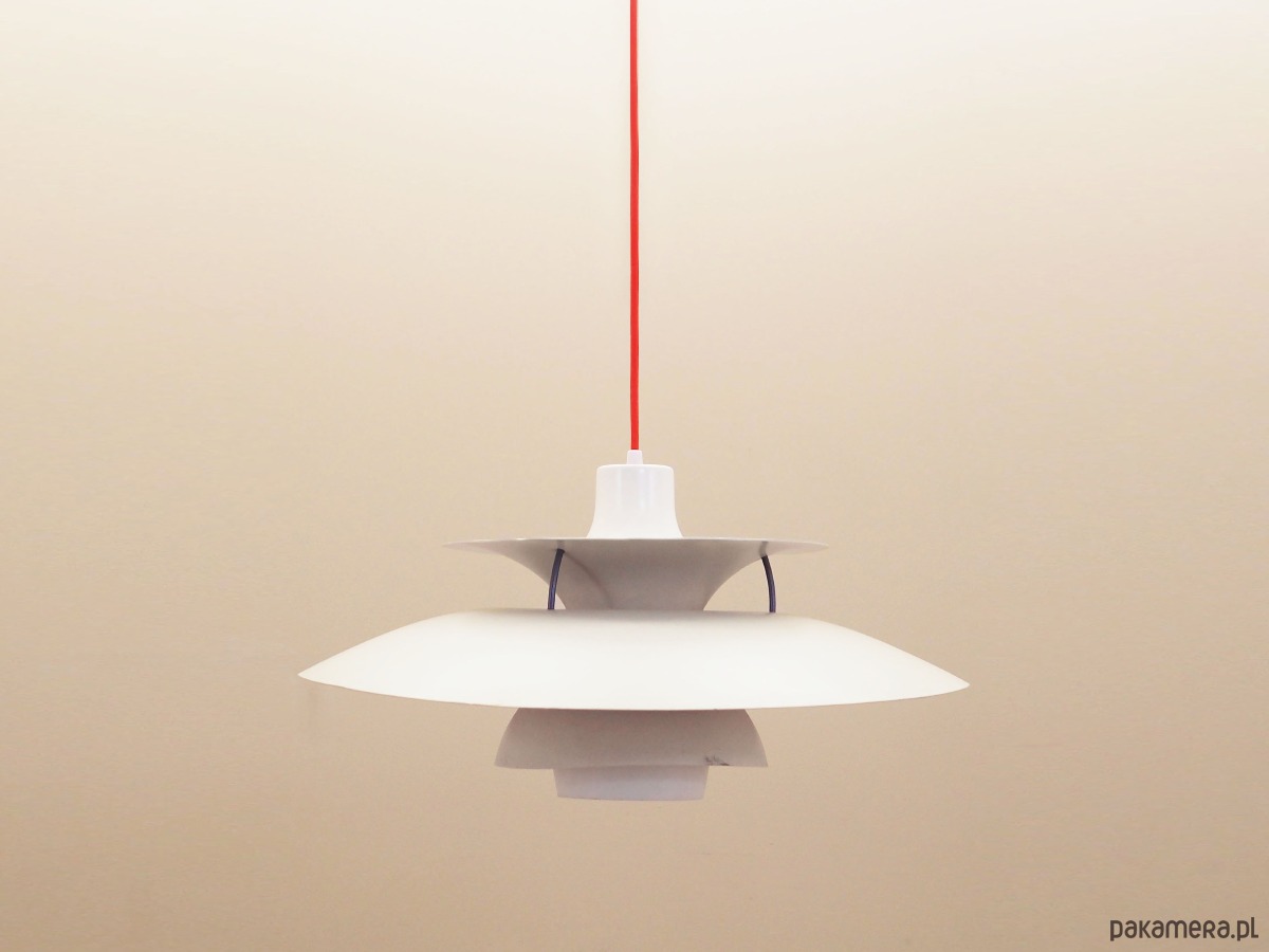Lampa wykonana została w latach 70-tych, wyprodukowana przez znaną duńską manufakturę Louis Poulsen. Model PH 5.