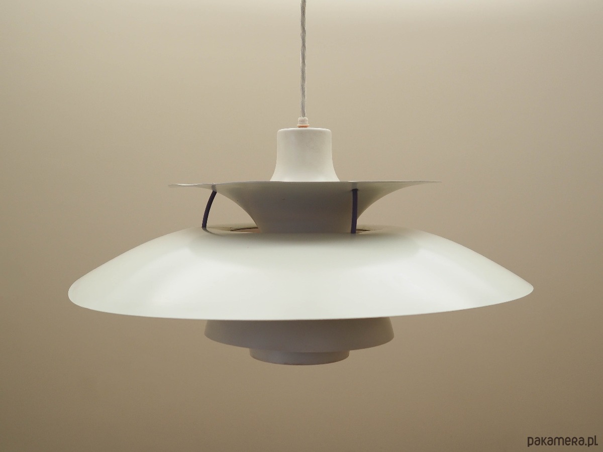 Lampa wykonana została w latach 70-tych, wyprodukowana przez znaną duńską manufakturę Louis Poulsen. Model PH 5.