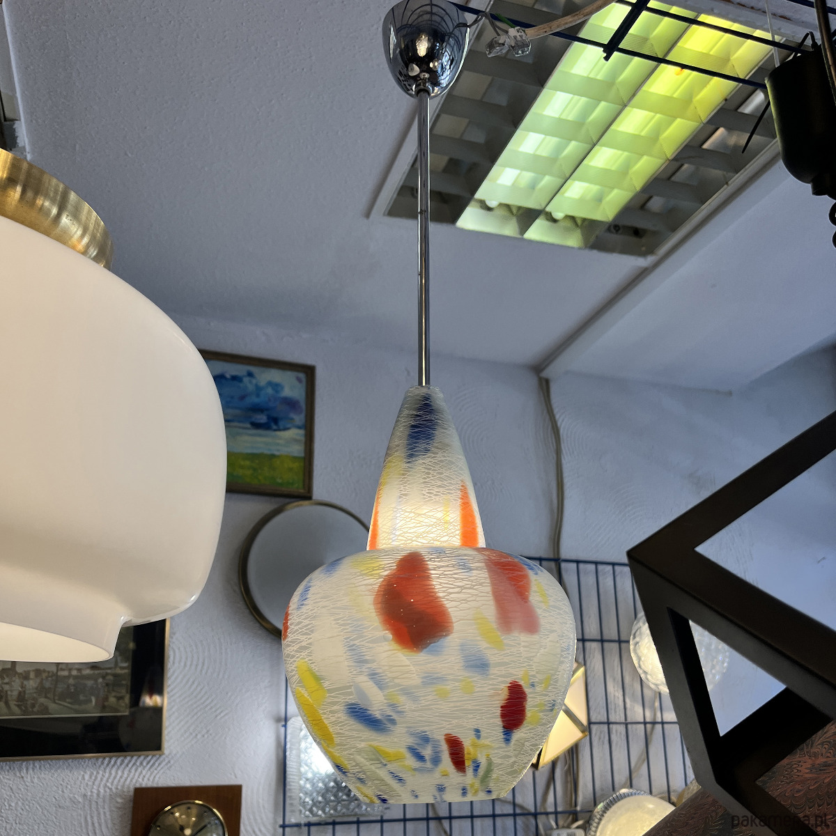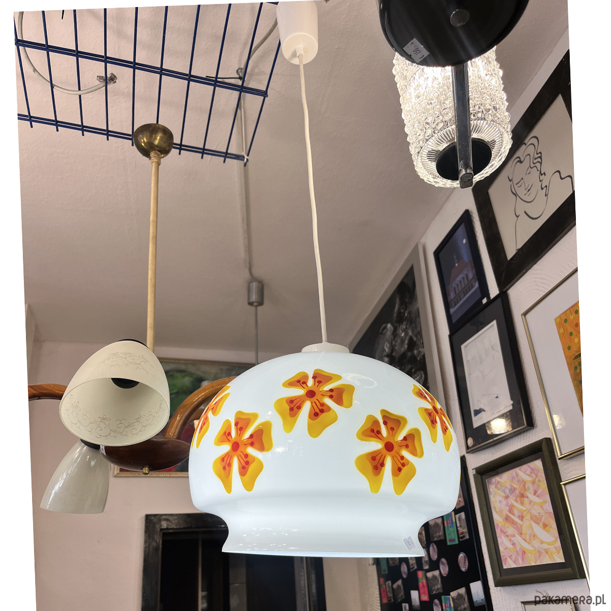 Dekoracyjna lampa wisząca wyprodukowana w zakładach VEB Beleuchtungsglaskombinat Görlitz w Niemieckiej Republice Demokratycznej w latach 70. XX wieku.