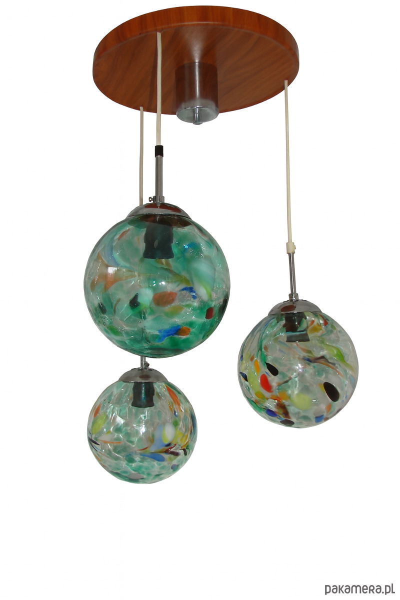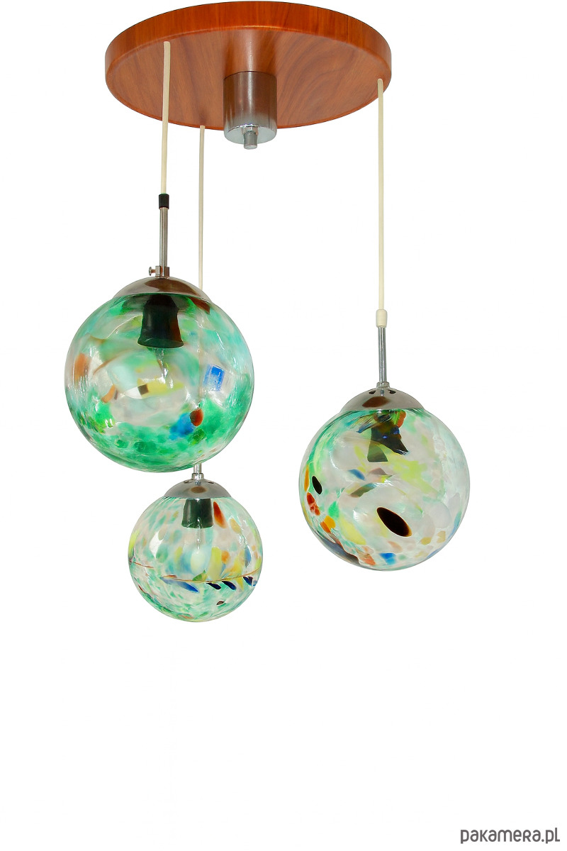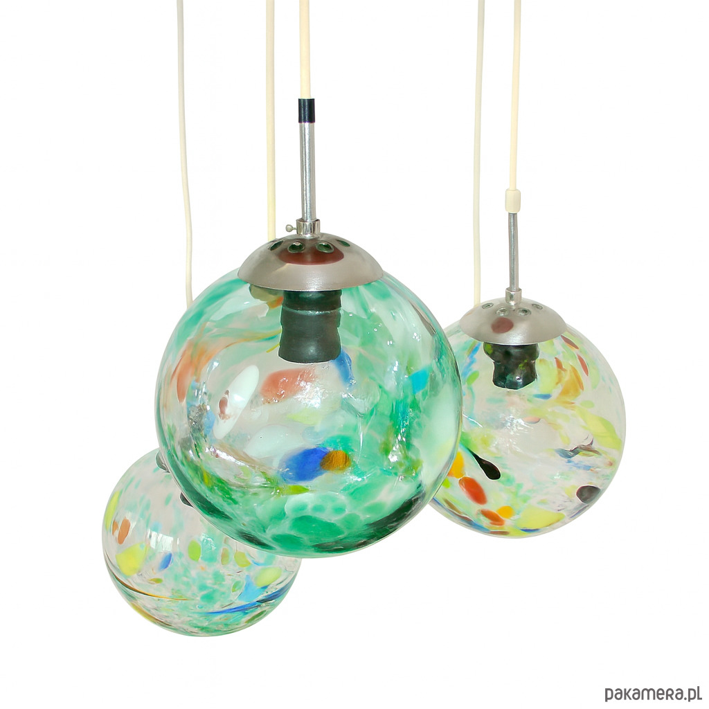 Lampa jest przystosowana do trzech żarówek z gwintem E27, co zapewnia bardzo dobre doświetlenie pomieszczenia. Kolorowe, szklane klosze nadają jej niepowtarzalny charakter i przykuwają uwagę