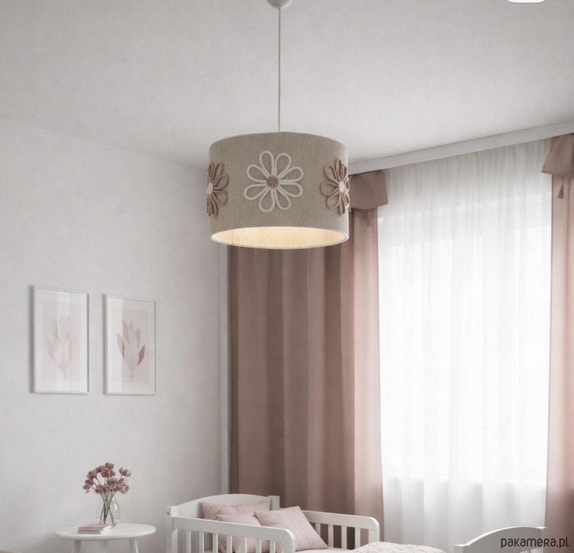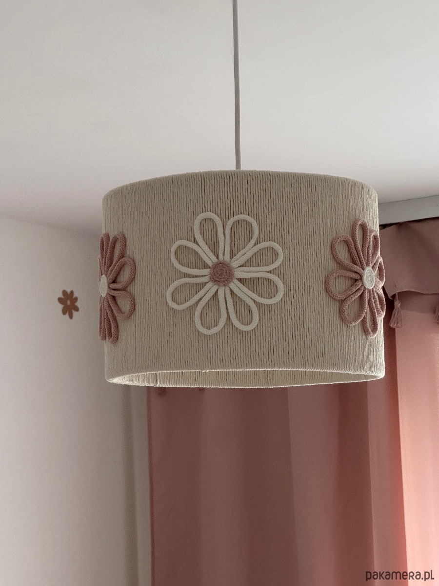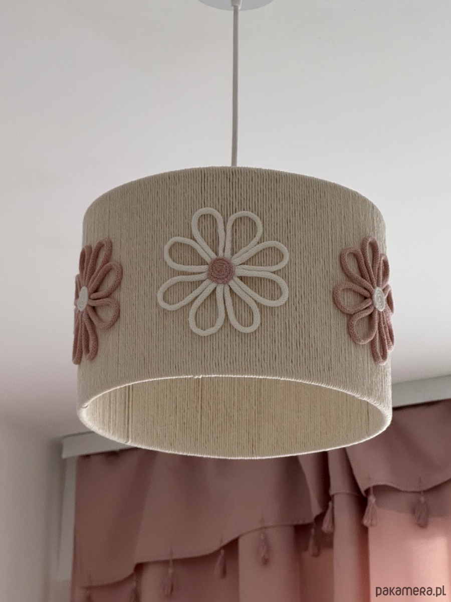 Wyjątkowa i subtelna lampa z kwiatkami w kolorze różu i bieli, doda uroku dziewczęcej sypialni.
