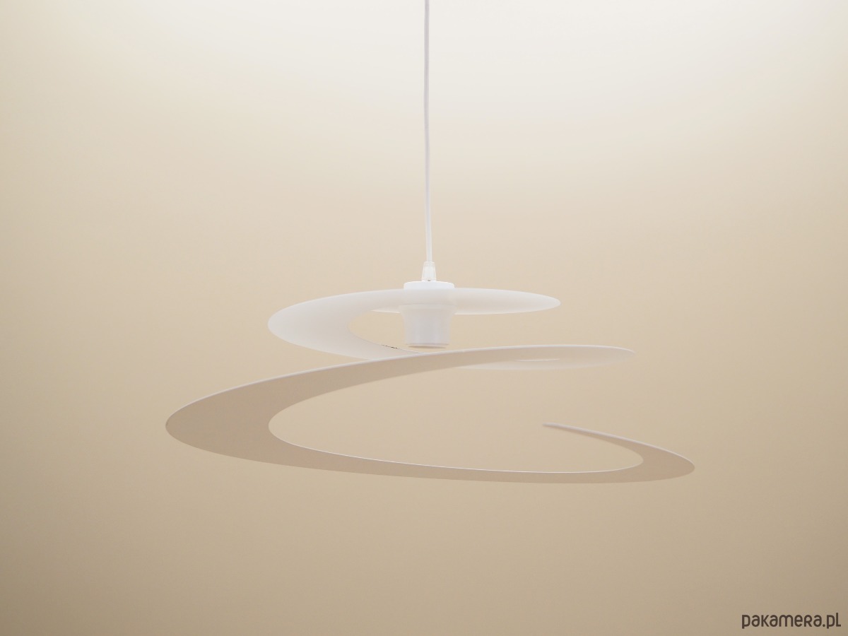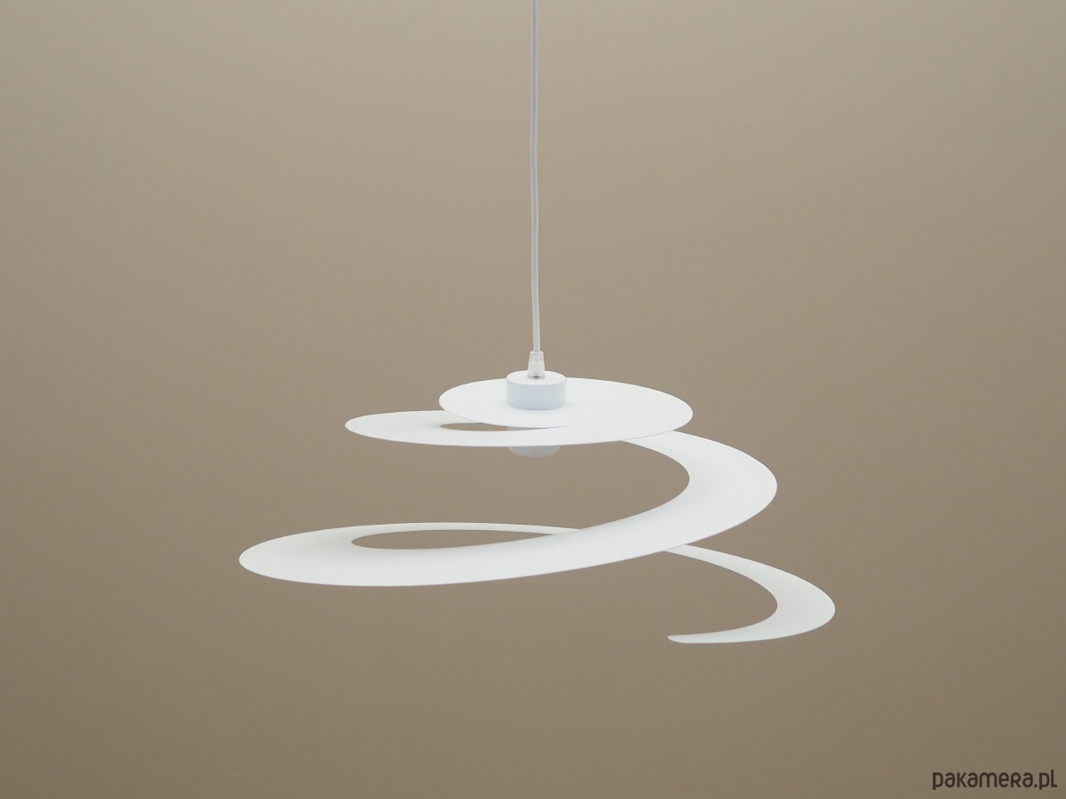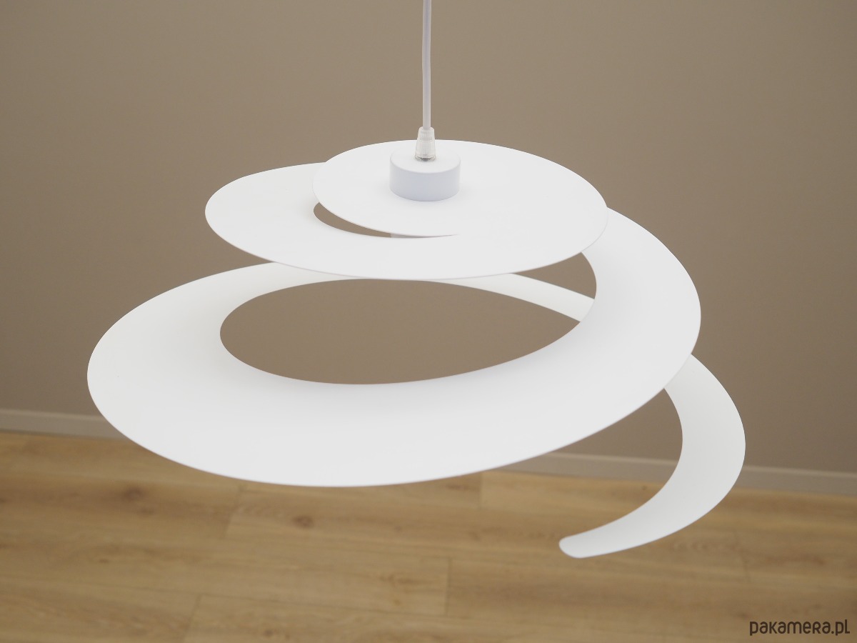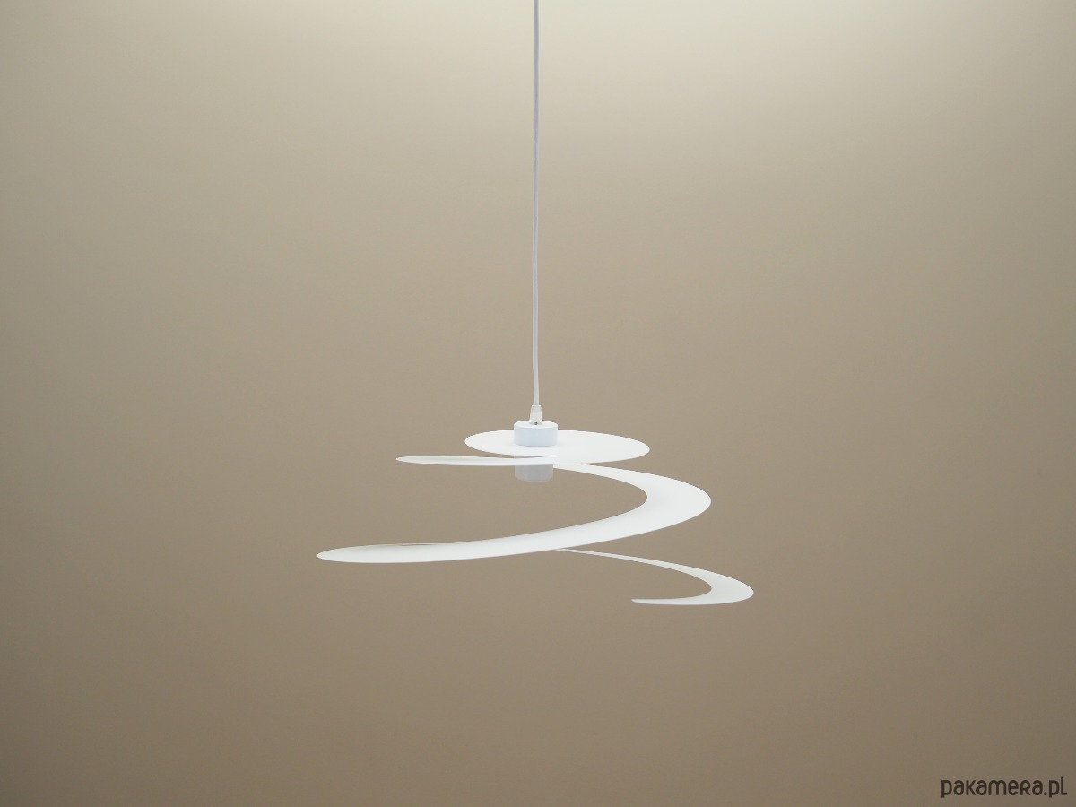 Wykonana z metalu w kolorze białym. Unikatowa konstrukcja jest nie tylko elementem designu, jej głównym założeniem jest rozproszenie światła w celu stworzenia przyjemnego nastroju wnętrza.