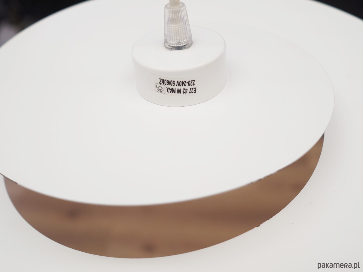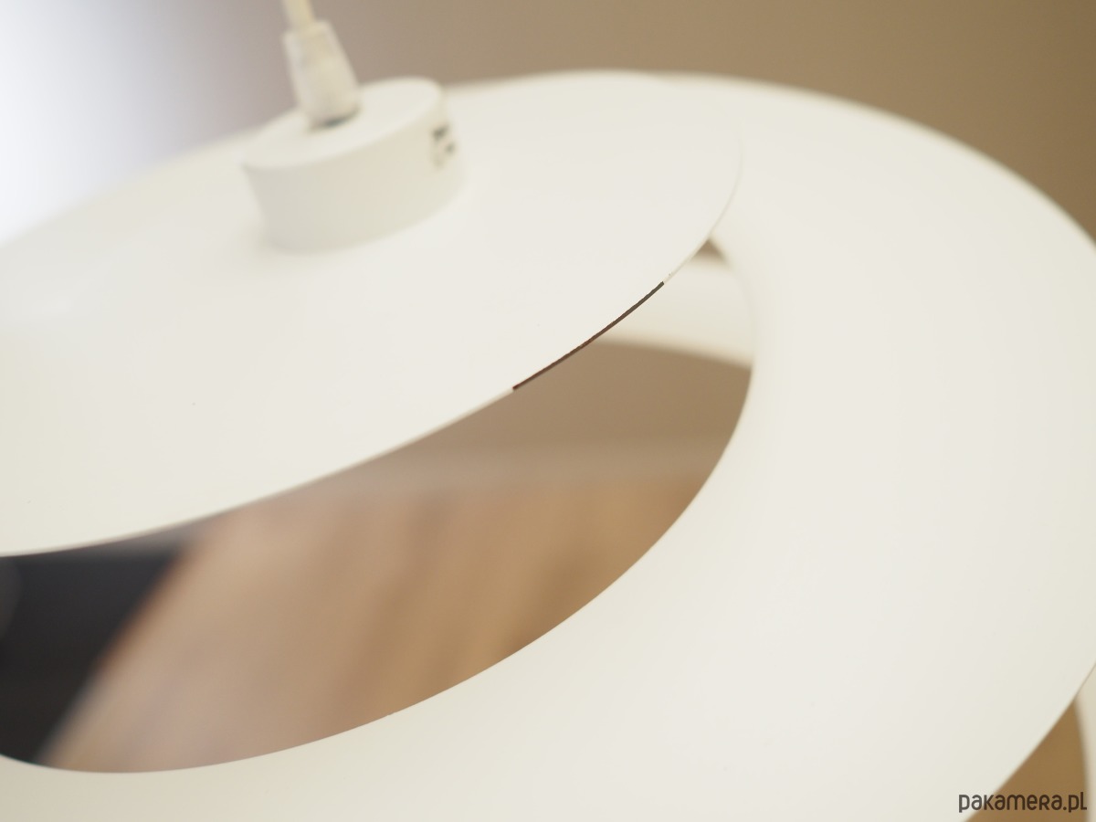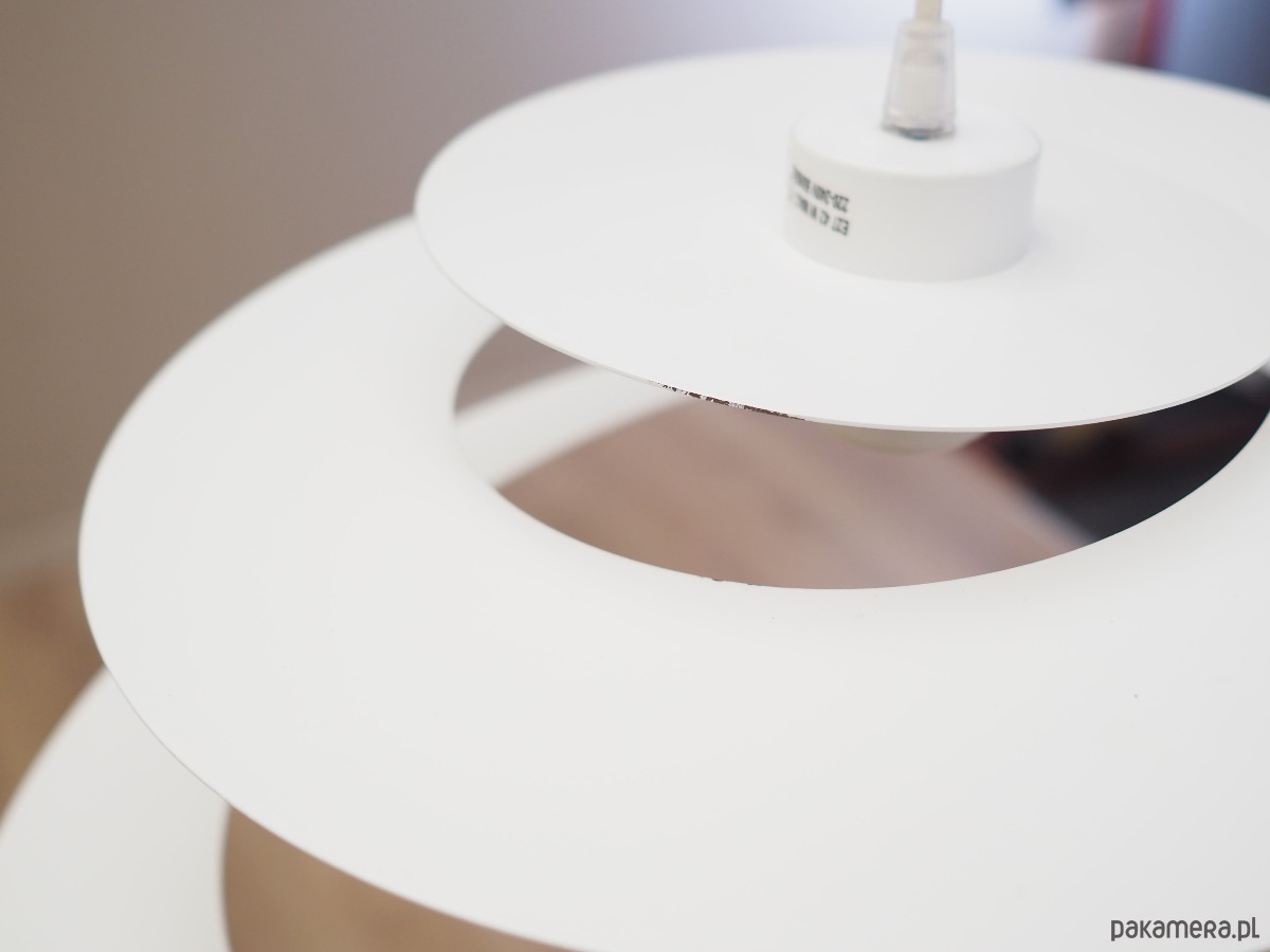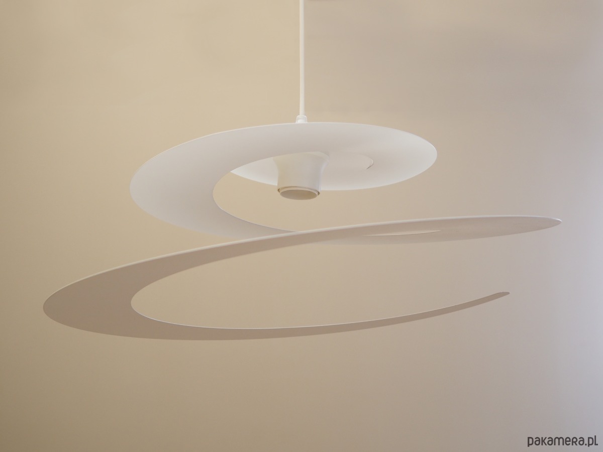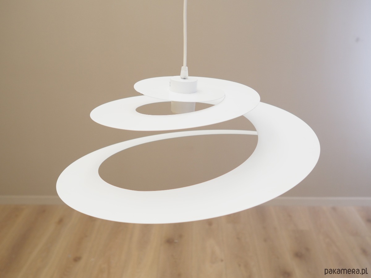 Wykonana z metalu w kolorze białym. Unikatowa konstrukcja jest nie tylko elementem designu, jej głównym założeniem jest rozproszenie światła w celu stworzenia przyjemnego nastroju wnętrza.