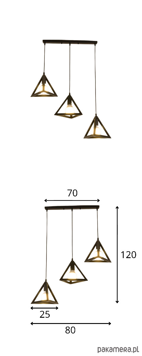 3xE27 - max 40W (oprawka z dużym gwintem, można zamontować każdą dostępną żarówkę, również LED)