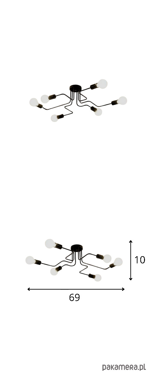 6xE27 - max 40W (oprawka z dużym gwintem, można zamontować każdą dostępną żarówkę, również LED)