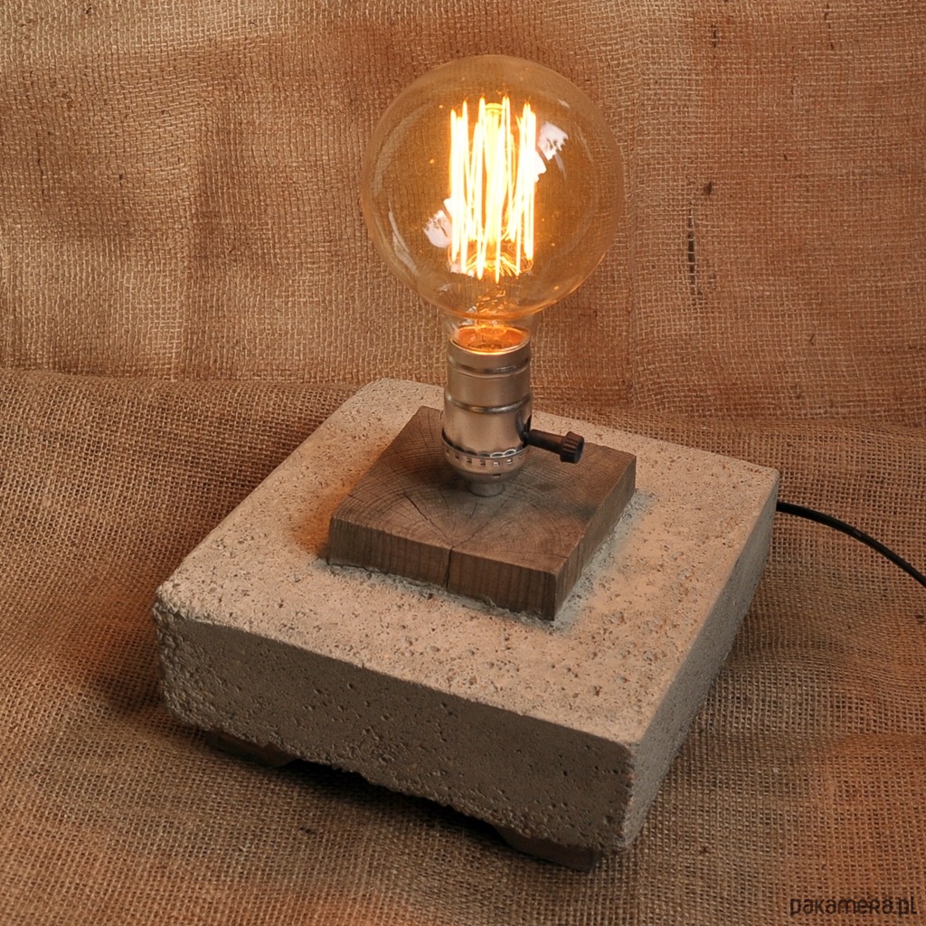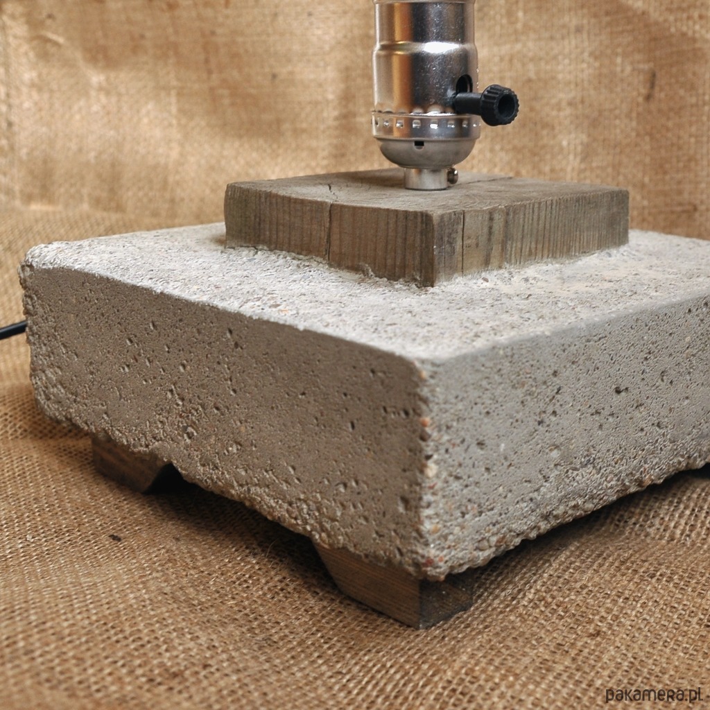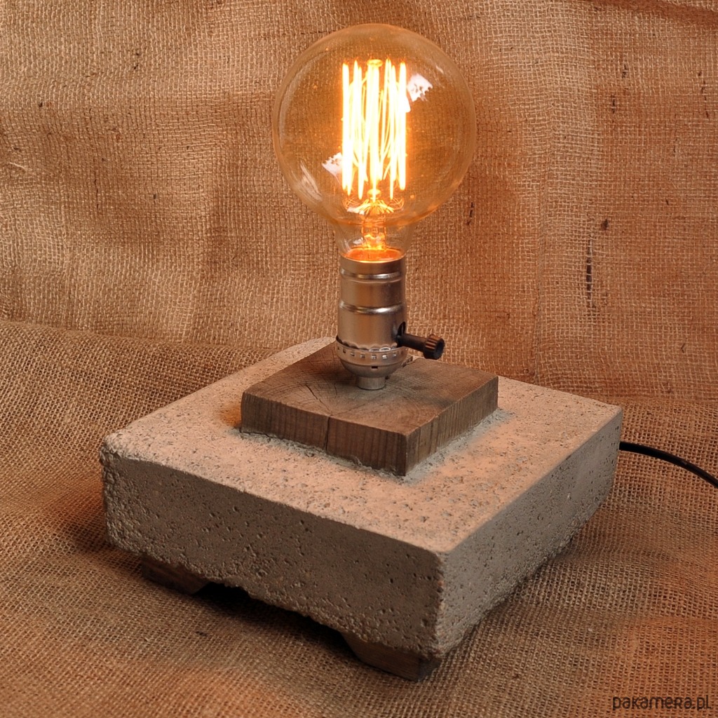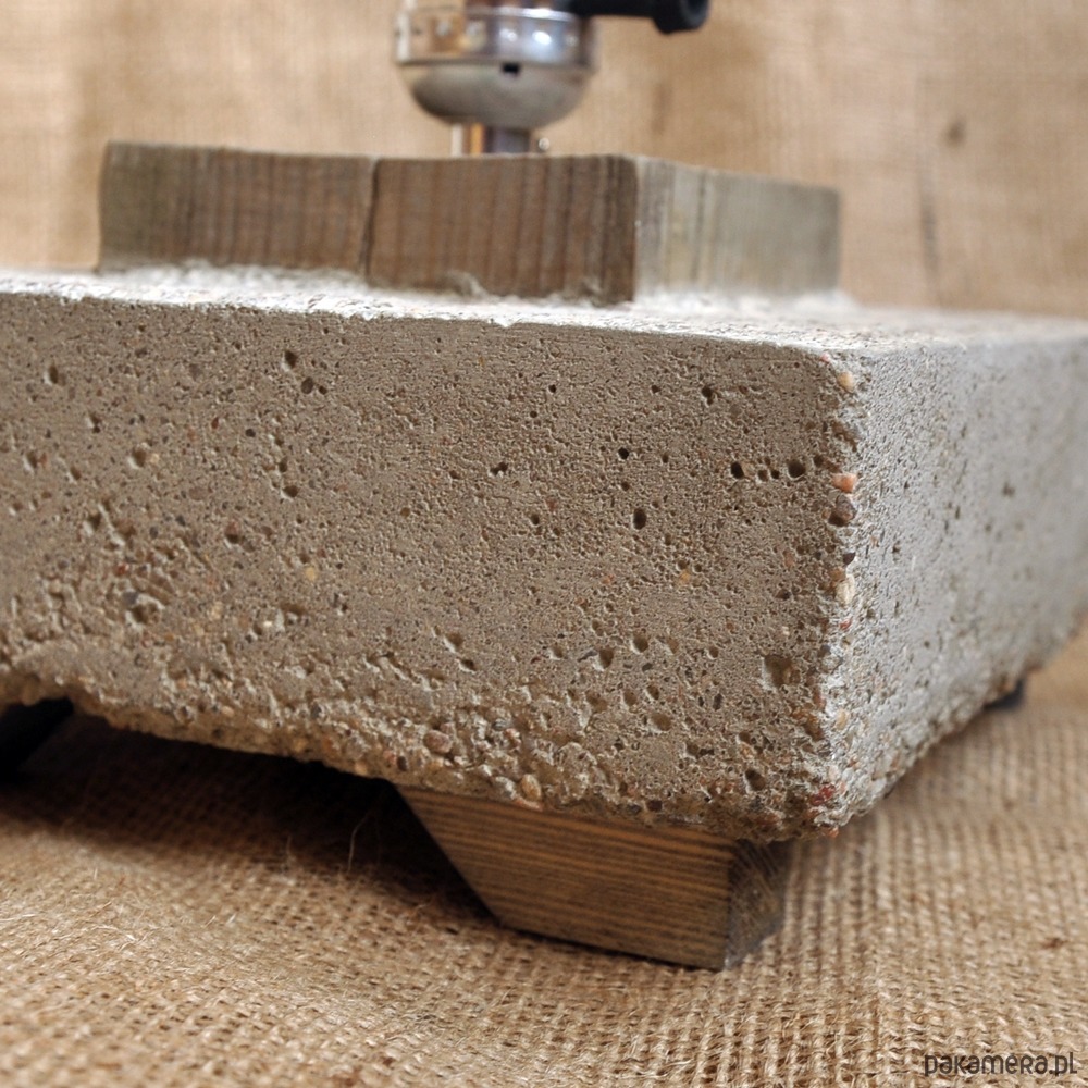 Lampa wykonana z betonu i starego drewna. Nierówności betonu oraz drewna, wraz z surowym, nieidealnym -ręcznym wykończeniem, oprawką w stylu industrialnym sprawiają, że lampa jest unikalna. Jedyny, niepowtarzalny egzemplarz. Sprzedawana w komplecie z żarówką w stylu retro.