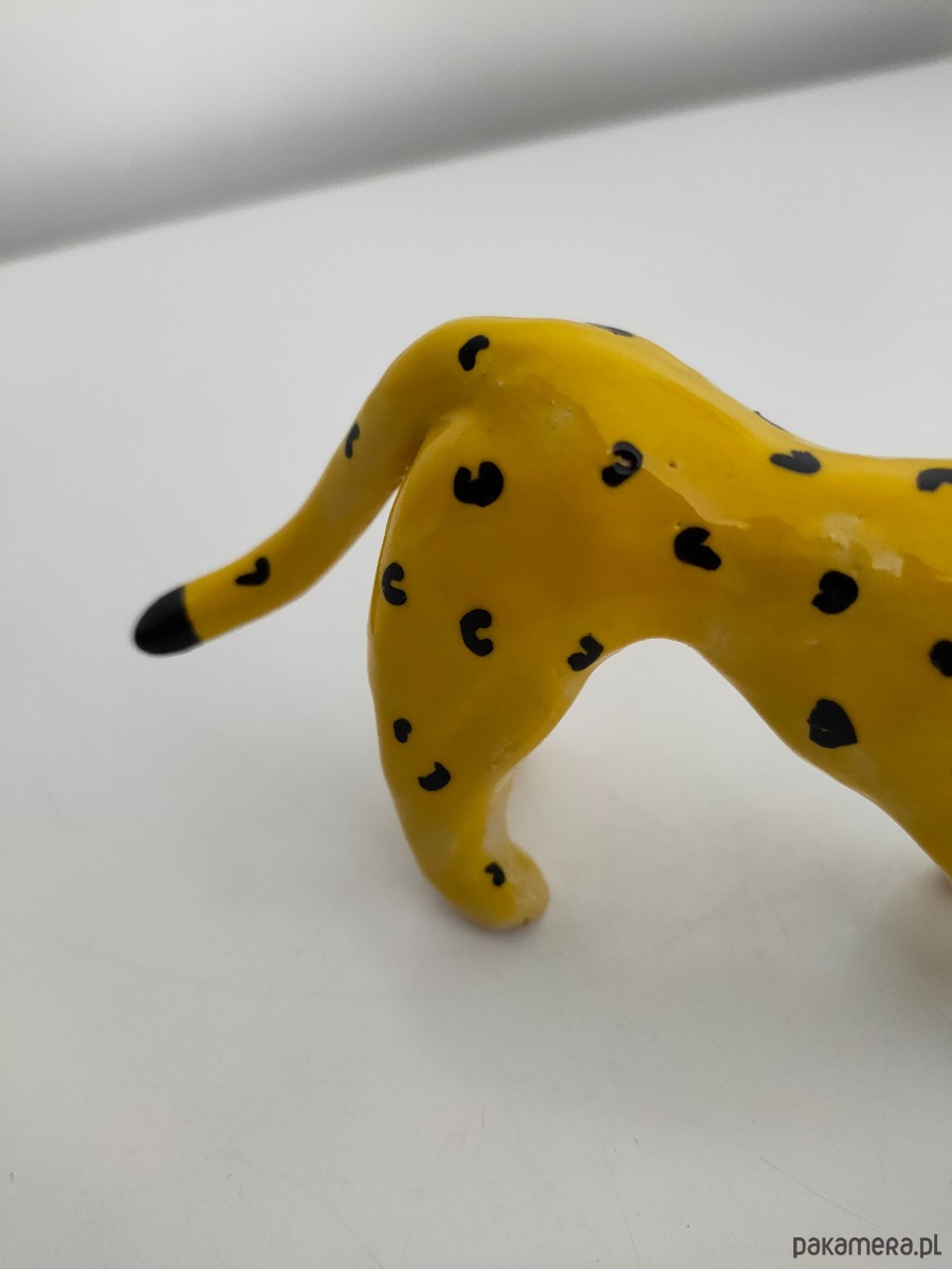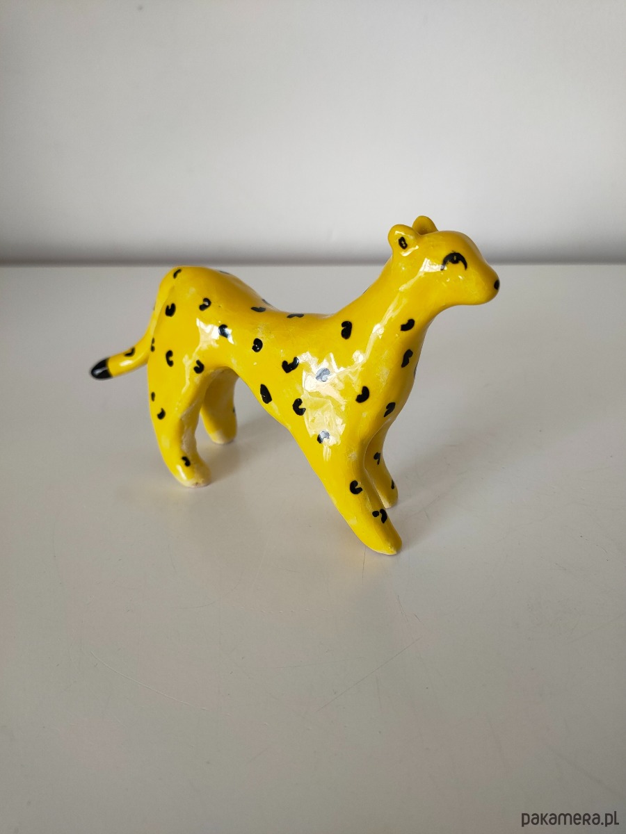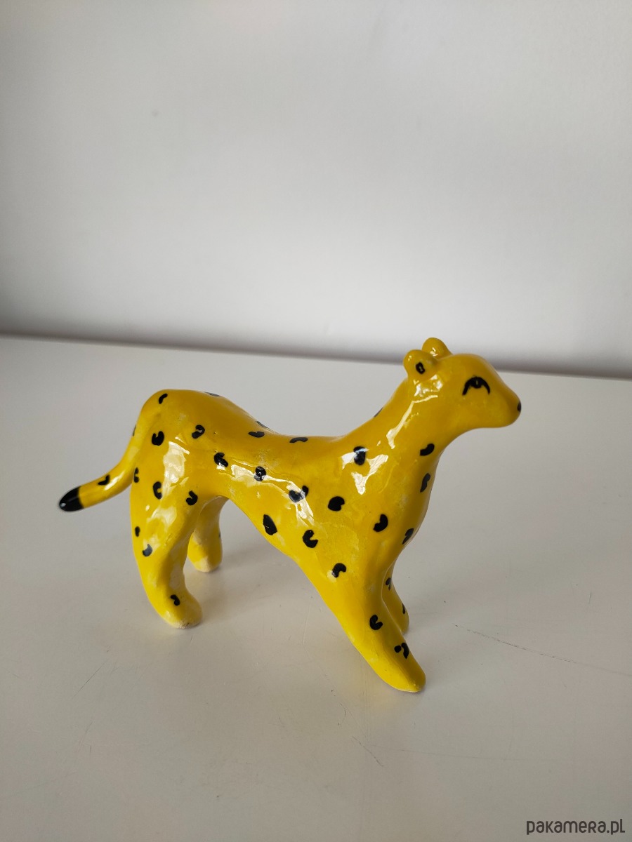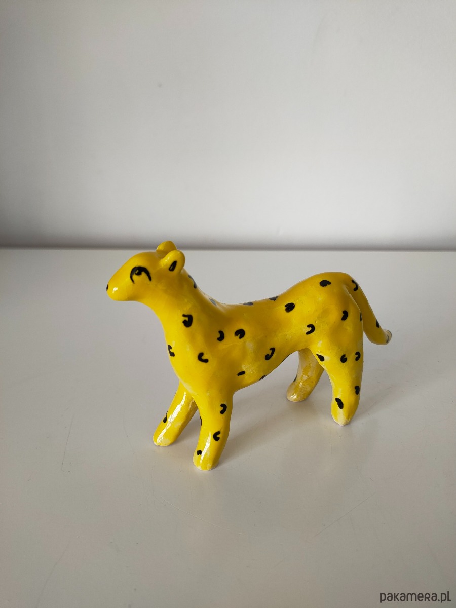 Ręcznie lepiony i malowany lampart ceramiczny.