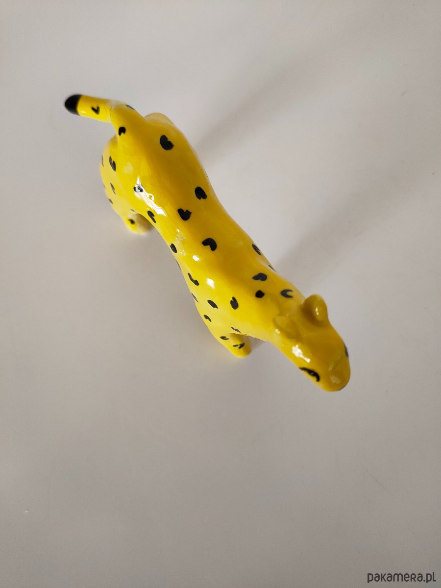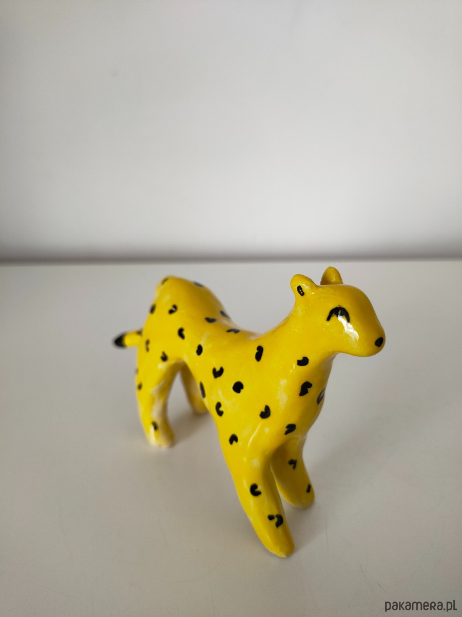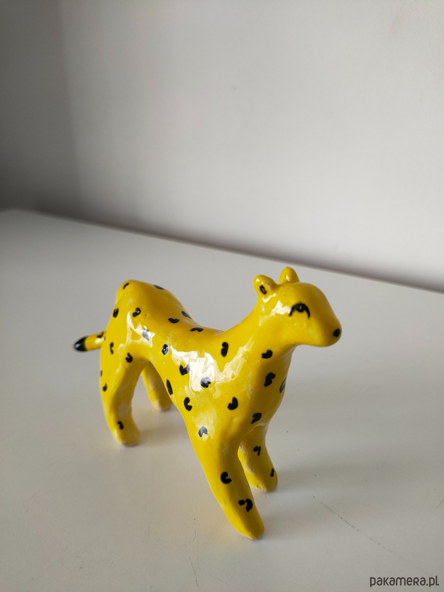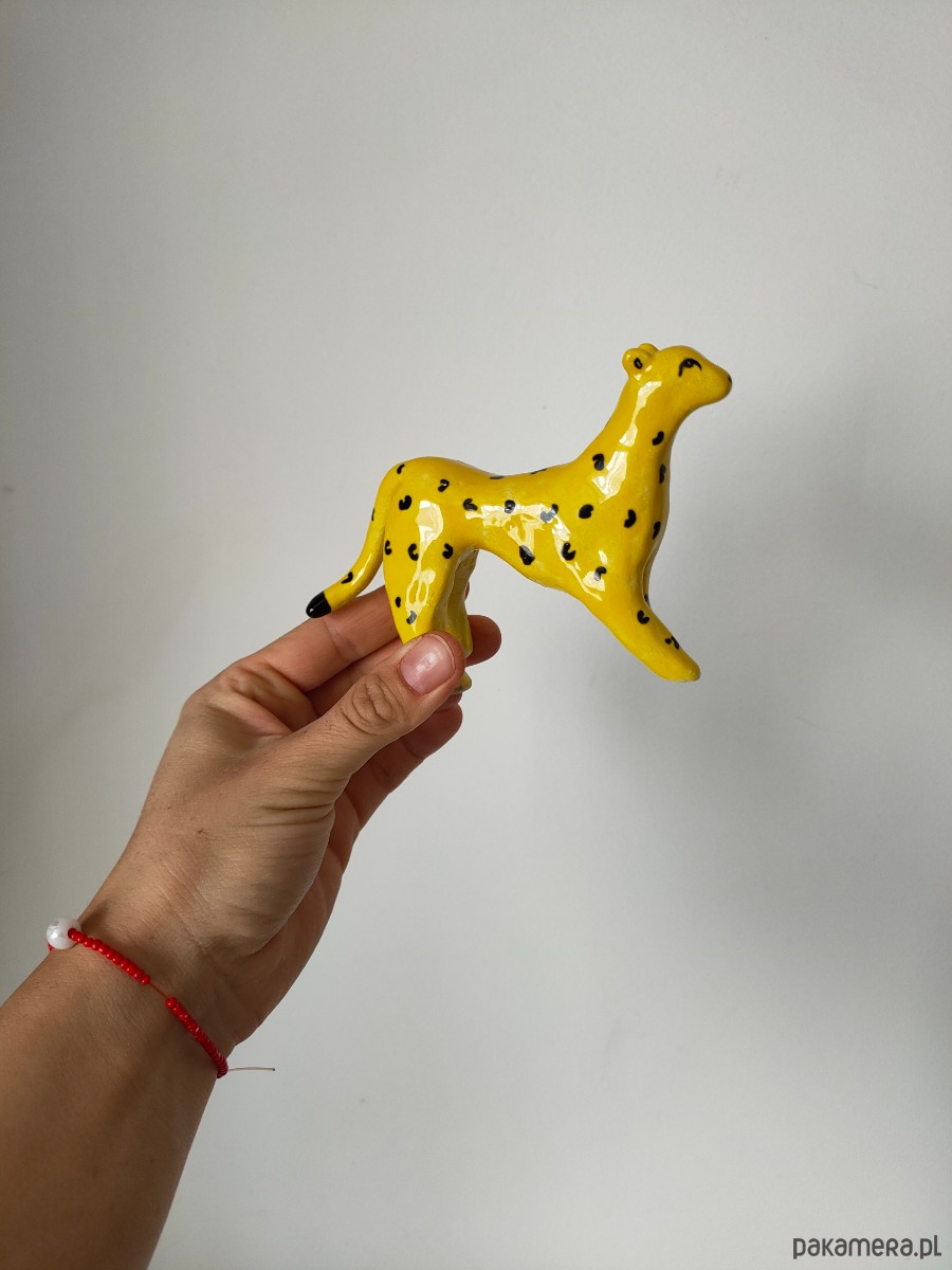 Ręcznie lepiony i malowany lampart ceramiczny.