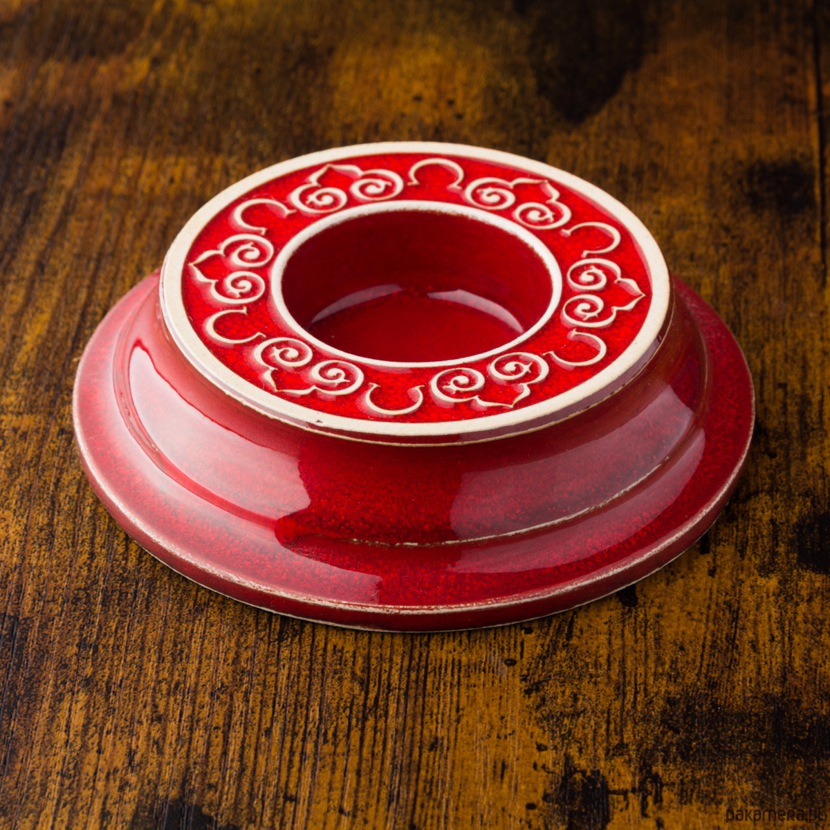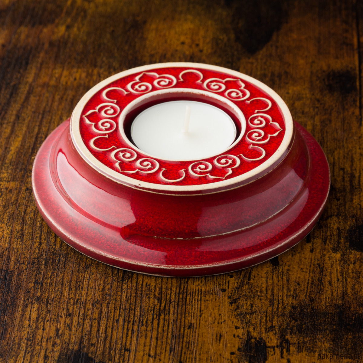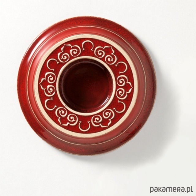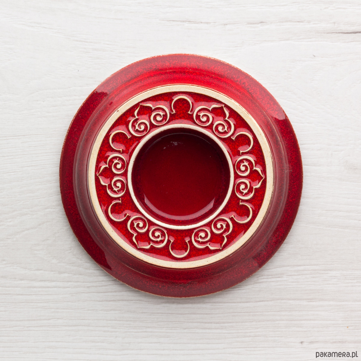 Ceramiczny lampion (świecznik) z lekko wypukłym ornamentem. Ręcznie wykonany z jasnej gliny i ręcznie szkliwiony. Od spodu sygnowany. Polecam serdecznie.