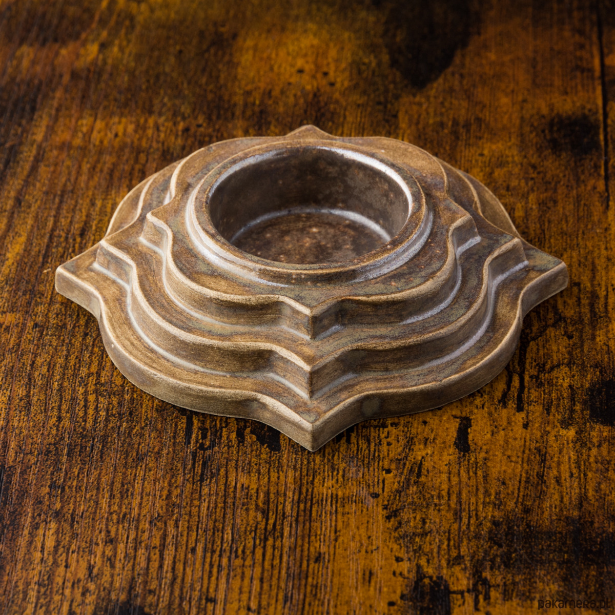 Ceramiczny schodkowy lampion (świecznik) na tealighty. Ręcznie wykonany z jasnej gliny, ręcznie szkliwiony.