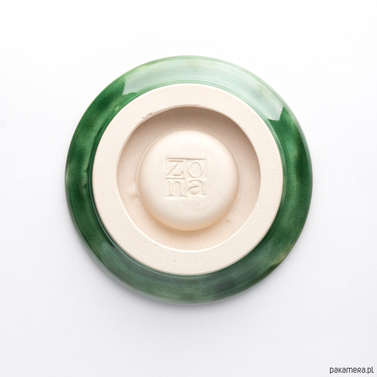 Ceramiczny lampion (świecznik) z lekko wypukłym, geometrycznym ornamentem. Wykonany z jasnej gliny, pokryty błyszczącym szkliwem. Od spodu sygnowany. Polecam serdecznie.